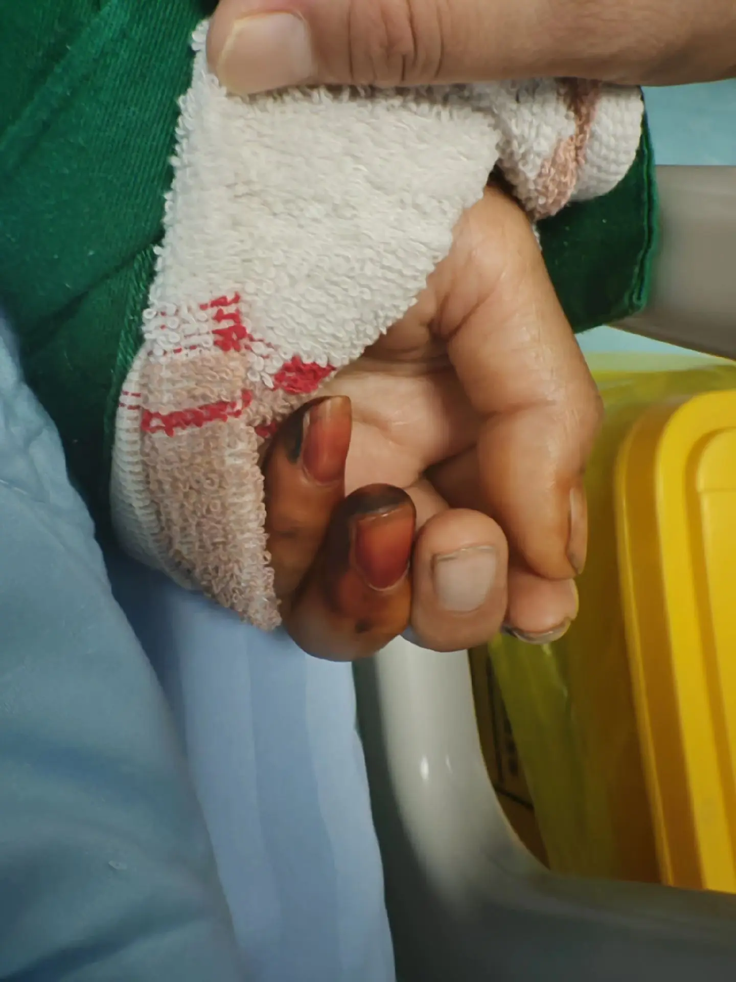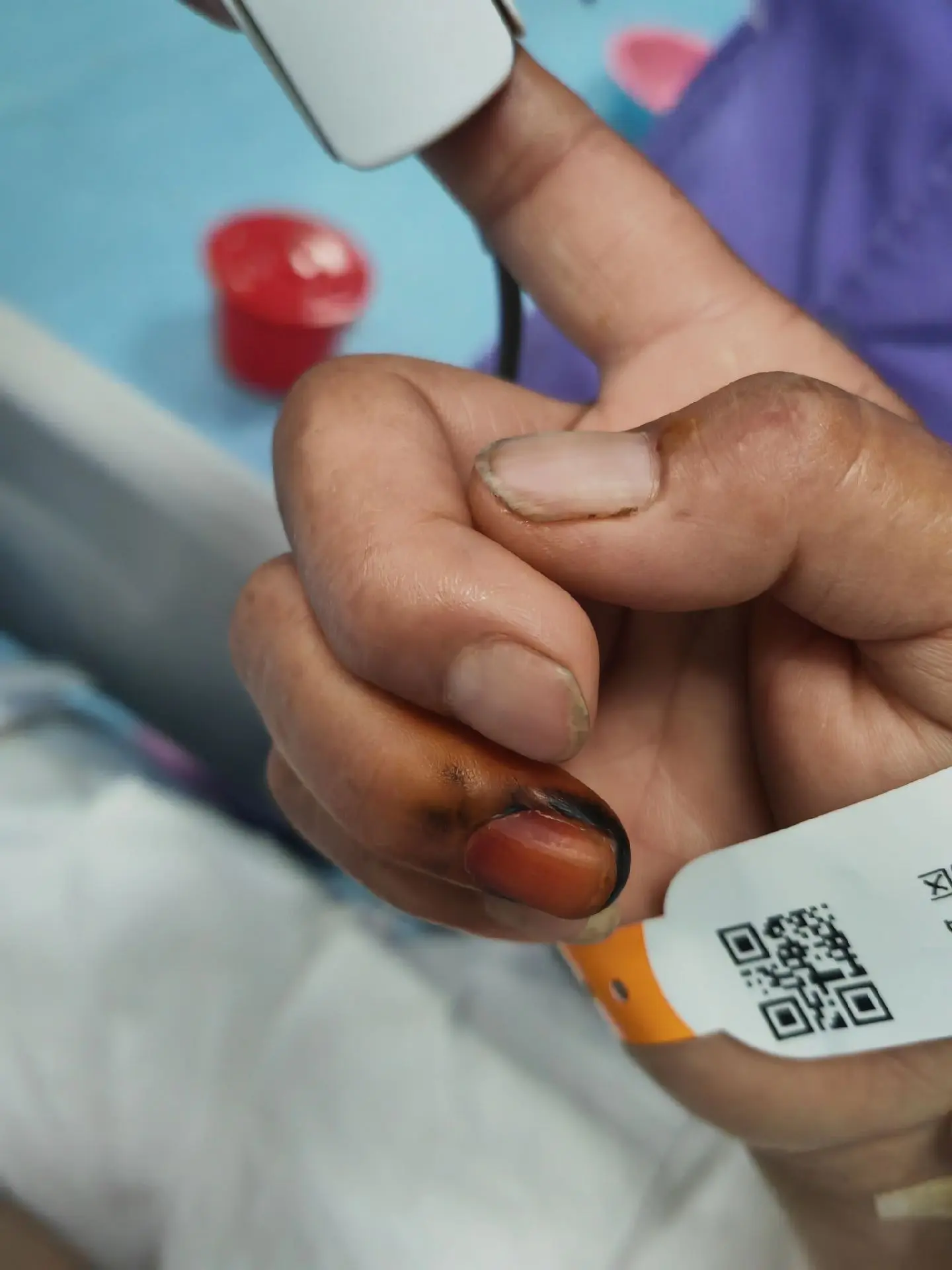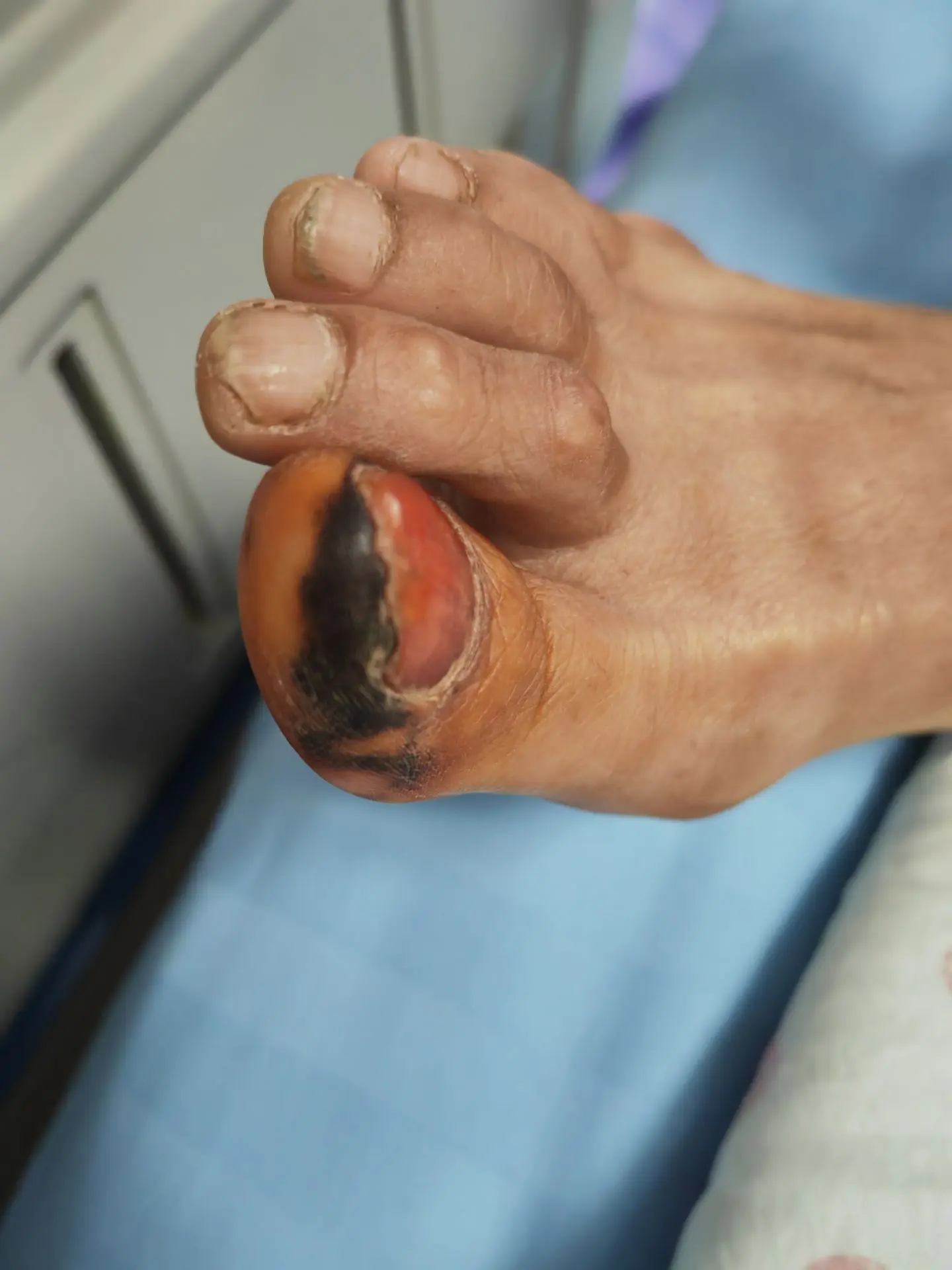干性坏疽。患者说是染的指甲草,能信吗?