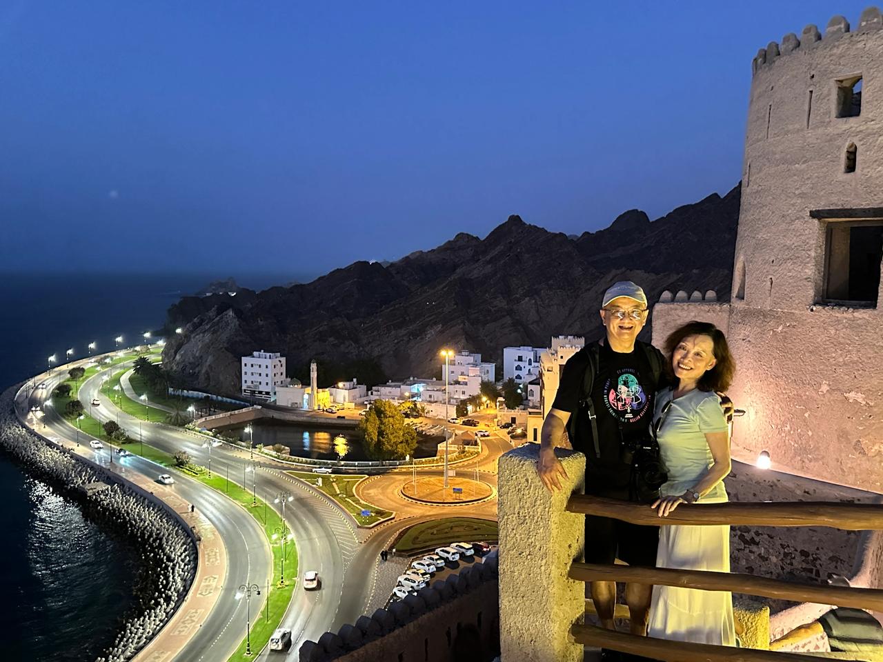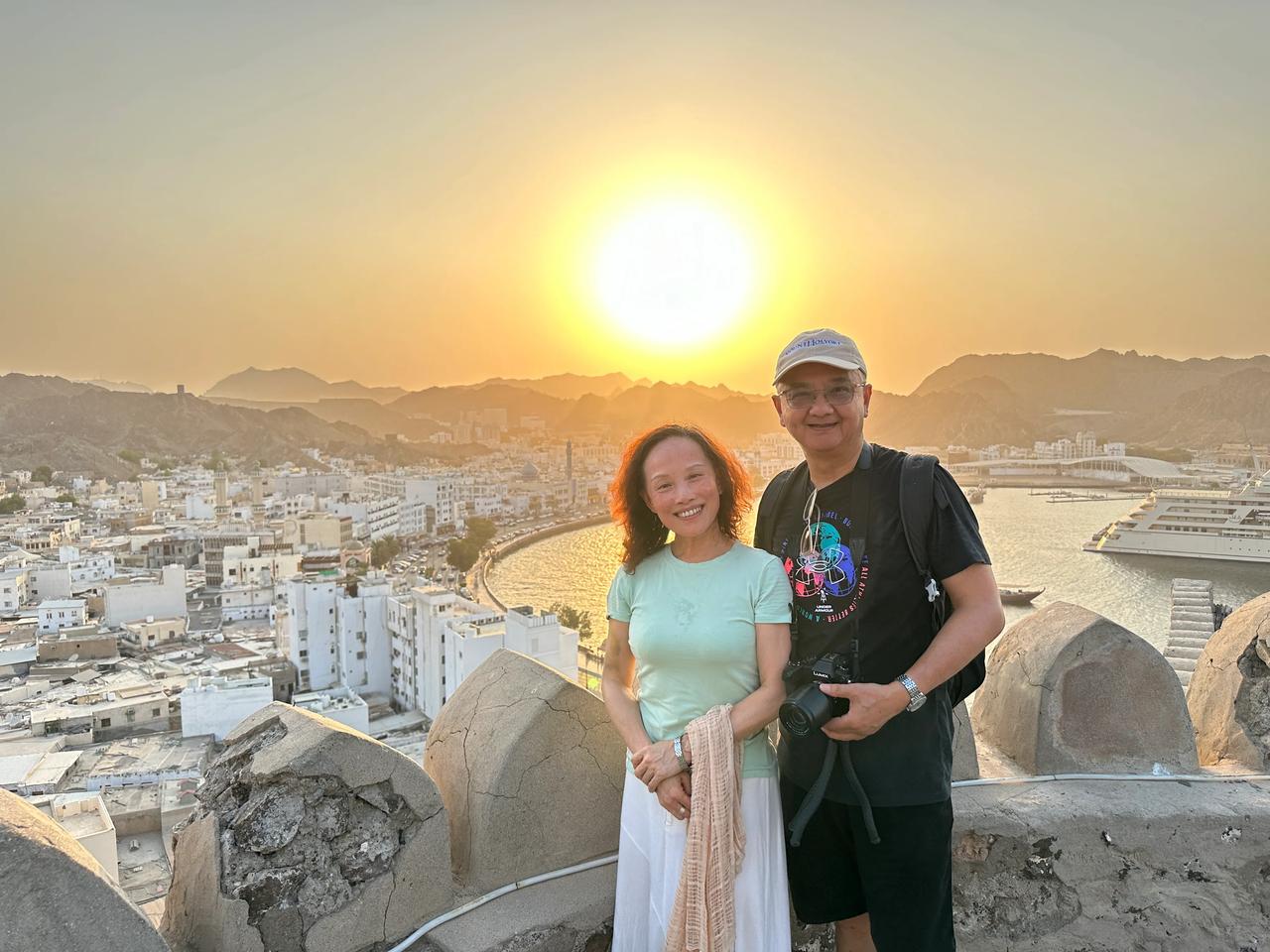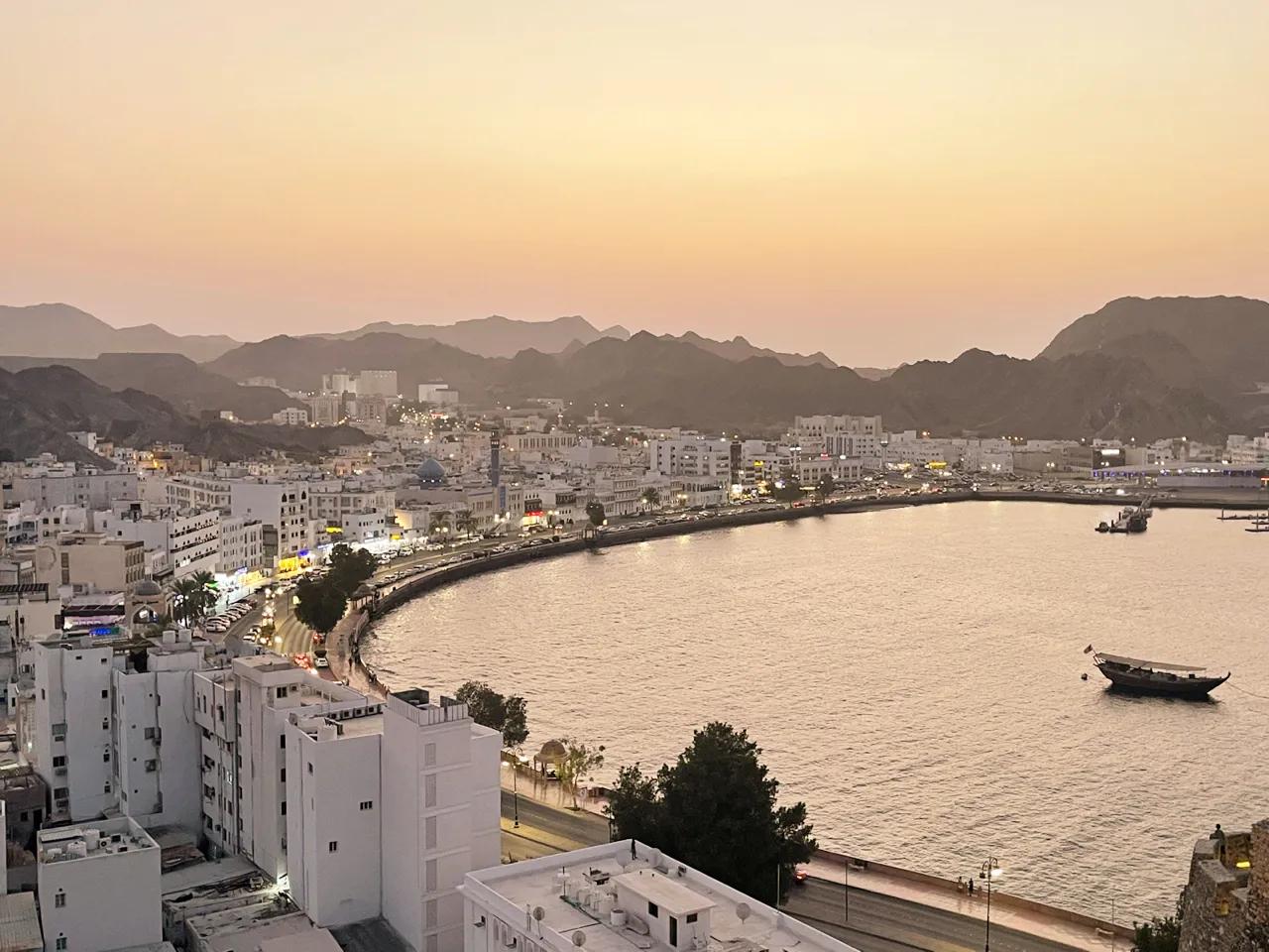 日落时分,城市与大海的交融。在阿曼首都登上穆特拉城堡,这是来到马斯喀特必打卡的景点,门票当地币3元。在这里遇到好几波中国年轻人,有出差的,有旅行的、也有旅居的,见面有缘又友好!很羡慕年轻人,他们除了美好前程还有大把时间享受生活,美好的旅行体验[赞][赞][赞]