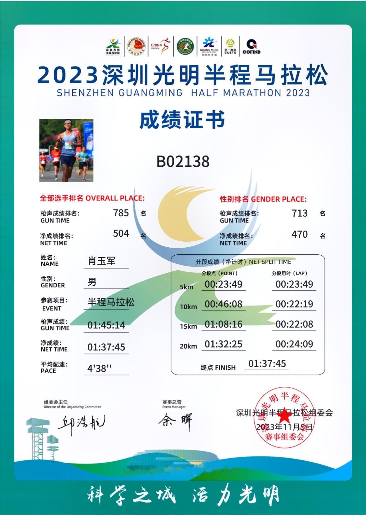 2023光明半程马拉松,安全完赛!分享一下我个人对于跑马拉松的看法: 1、刷新PB 2、安全完赛 3、平安回家 结合比赛当天自己的实际情况,如果PB无望,就想办法完全完赛,如果不能安全完赛,那就放弃比赛,平安回家是我们最后的底线,一定要守住。 就像这次光明半程马拉松,八点开跑,天气比较炎热,体感温度30度左右,再加上坡比较多,累计爬升大概一百多米,中途路有点窄,这种情况是很难跑出好成绩的,而我又是从B区出发,前面好几千人,七分半钟才过计时点,前面六公里基本都是在人群中穿梭,后面我发现自己跑不进一个半小时,温度也越来越高,一路上看到好几个人倒在路边,心里很不是滋味,我果断降速,调整目标,最终坚持下来,安全完赛,很庆幸自己及时调整,也希望大家每次比赛都能平安回家,因为很多人在家里等着我们。马拉松 跑步 马拉松比赛
