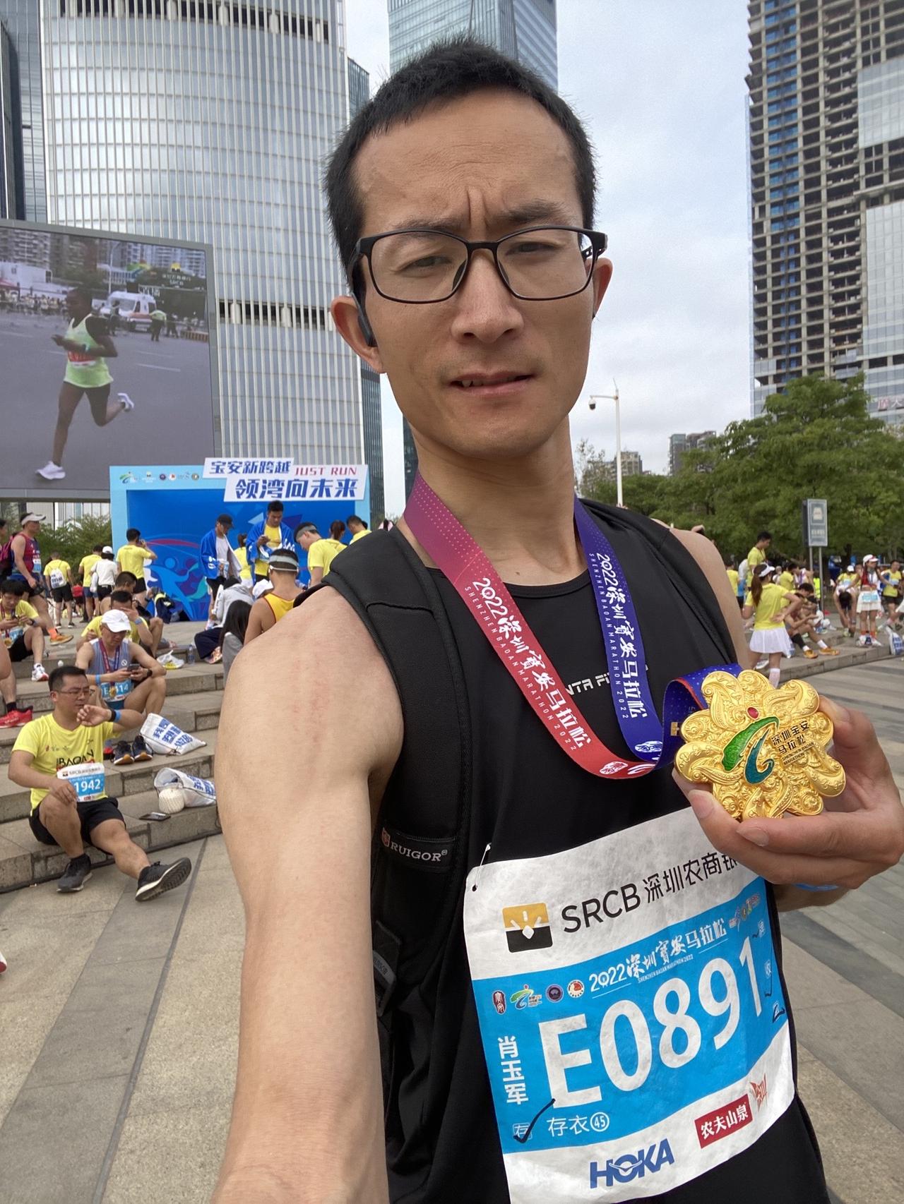 第一次报名参加马拉松比赛,跑得我好辛苦。今年的深圳宝安马拉松是我第一次报名参赛,人生首个马拉松,稳妥起见,我选择报了半马,由于以前没有成绩,被分在了E区起跑,开跑后9分多钟才到达计时起点,用了5公里左右才冲出人群,慢慢找回节奏,赛前目标是1小时35分内完赛,很开心最后完成了目标,可是这一路跑下来,真的太不容易了,希望以后越来越好吧,继续努力,加油。深圳宝安马拉松 跑步 马拉松 半程马拉松