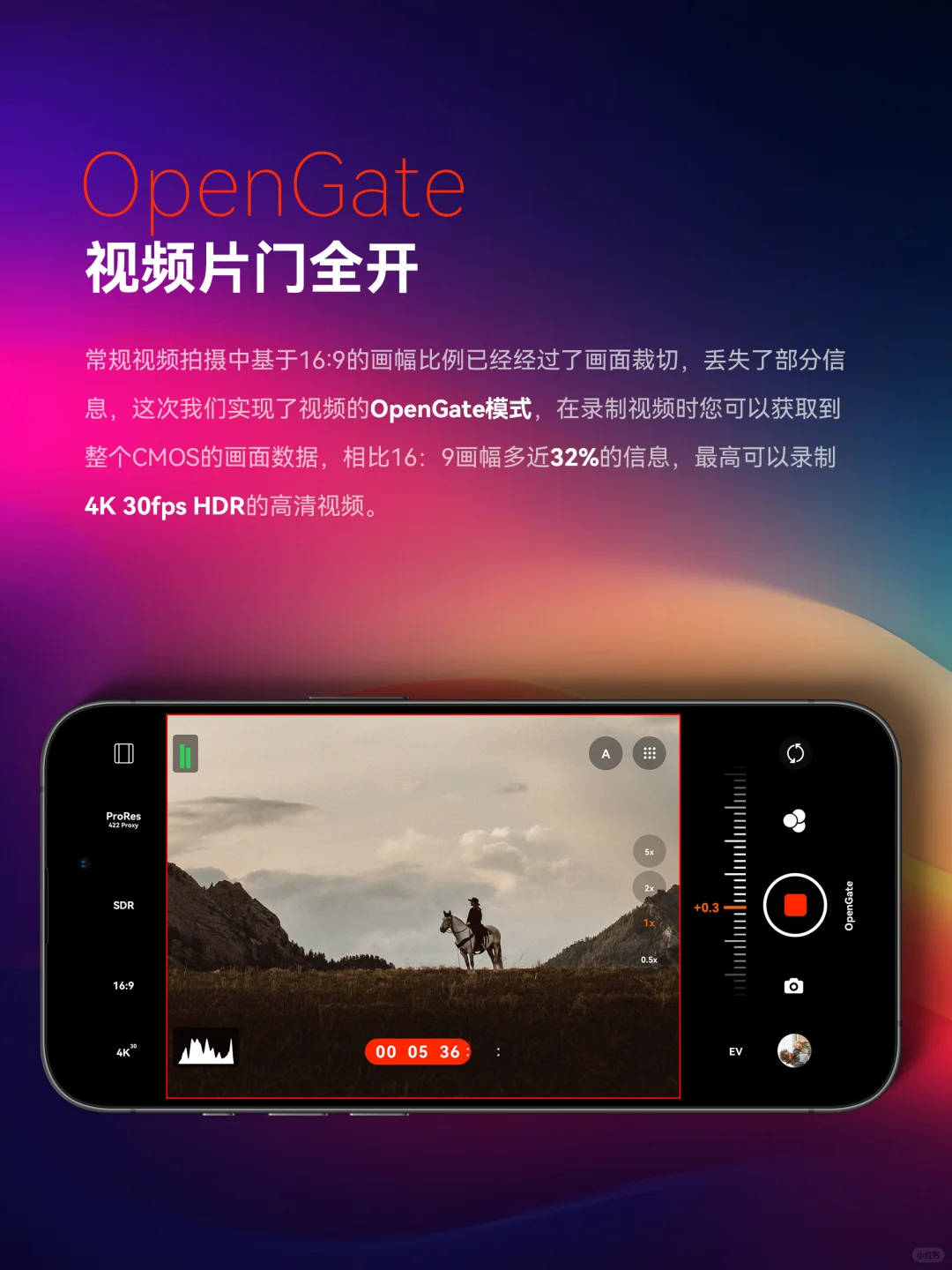 1.Applelog电影静帧模式:针对iPhone15 Pro以上机型,我们创新地引入了AppleLOG电影静帧模式,基于AppleLOG色彩科学进行更准确的还原色彩,真正实现拍照的完全无锐化与电影感。