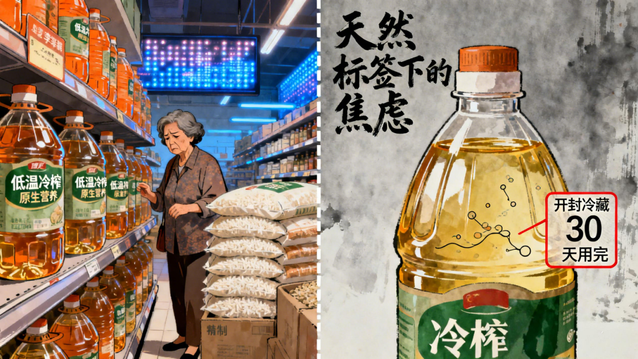 被“天然”标签击中的焦虑周末的超市粮油区,52岁的李阿姨盯着一瓶标价不菲的冷榨亚麻籽油犹豫再三。瓶身醒目的绿色标签写着“低温冷榨,锁住原生营养”,旁边的宣传册还印着“拒绝高温破坏,给家人最自然的健康”。她想起最近刷到的公众号文章说“工业加工会让油脂失去活性”,再看看身边堆积的精制米面,一种对“工业食品”的焦虑涌上心头。“我就想给孙子吃点‘没被加工过’的东西,广告说冷榨的保留了植物本身的营养,肯定比热榨的好。”李阿姨最终掏了钱,却没注意到标签角落一行小字:“开封后需冷藏,30天内用完”。她不知道,这行字背后藏着冷榨油最大的秘密——它从未真正“成熟”为适合人体的食物。真正的健康,从来来自稳定,而不是来自未被处理。植物籽内部含有让种子发芽的全部化学动力——酶、过氧化物前体、多酚氧化体系、高活性的脂肪酸链。这些成分对于植物的生命是必要的,但对于人体而言,它们不是营养,而是负担。油脂在冷榨条件下,保持了植物生命系统的活性,却未完成油脂必须经历的熟化过程,使油脂在进入人体之前仍处于“反应状态”。这种活性并不会在人体内变成营养,反而会刺激肠胃,引发易氧化物质的摄入,甚至增加身体处理过氧化物的负担。冷榨的“天然”,藏着哪些健康隐患?未完成的化学链:身体不需要的“活性”冷榨油的营销核心是“保留营养”,但这个逻辑从科学上站不住脚。植物籽里的酶、多酚氧化体系等成分,是种子发芽的动力,却不是人体需要的营养。冷榨让这些成分保持活性,等于把“正在变质的半成品”送进你的身体:
