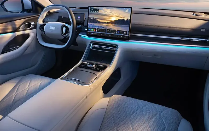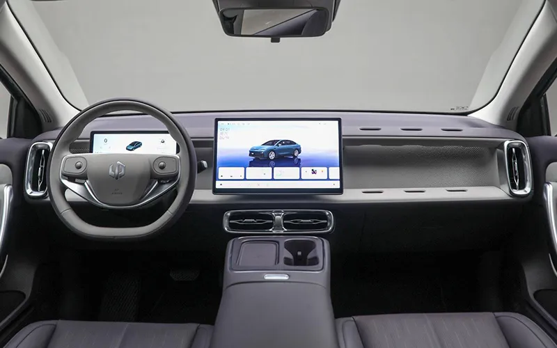 零跑B01采用家族外观设计,内饰也是新能源轿车一贯的设计,适配大多数人的审美,其配备8.8英寸全液晶仪表盘以及14.6英寸2.5K高清中控屏。标配8155芯片,高配车型搭载高通8295P芯片。