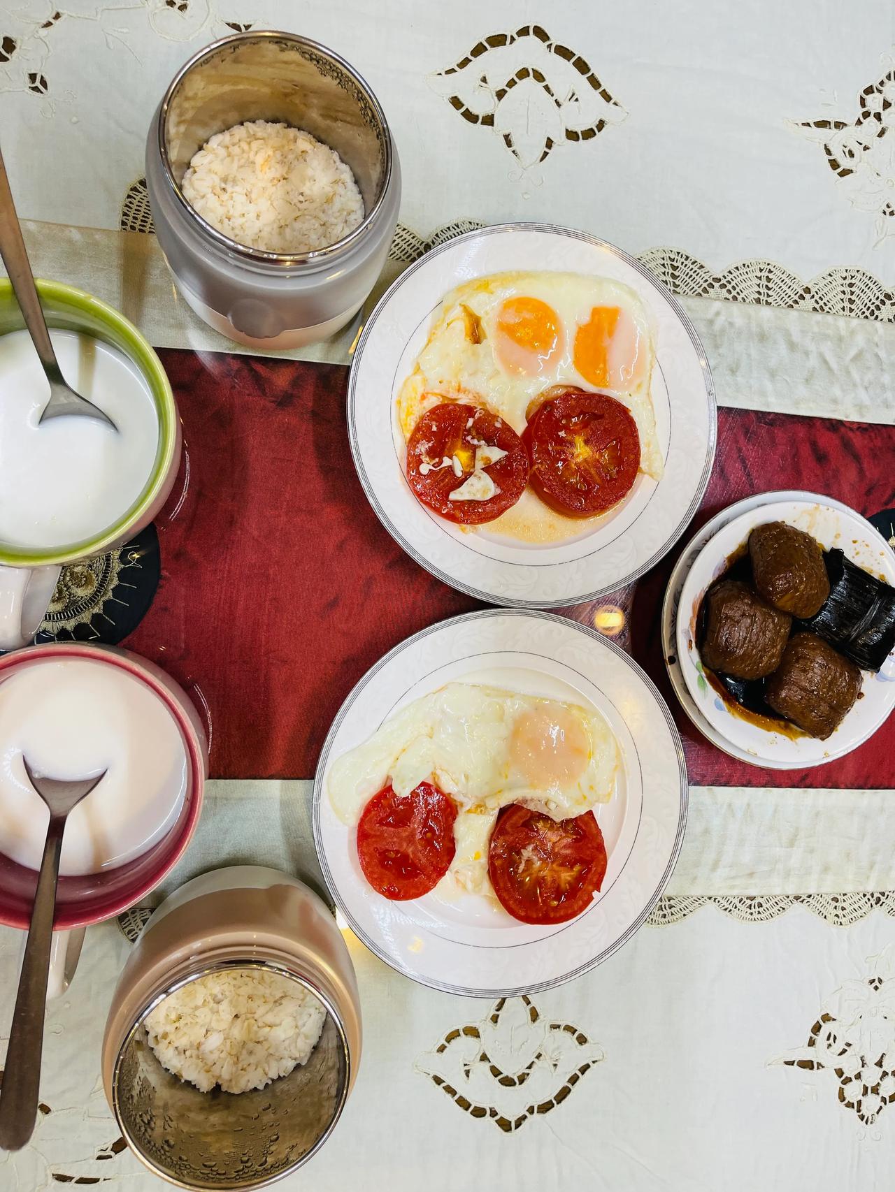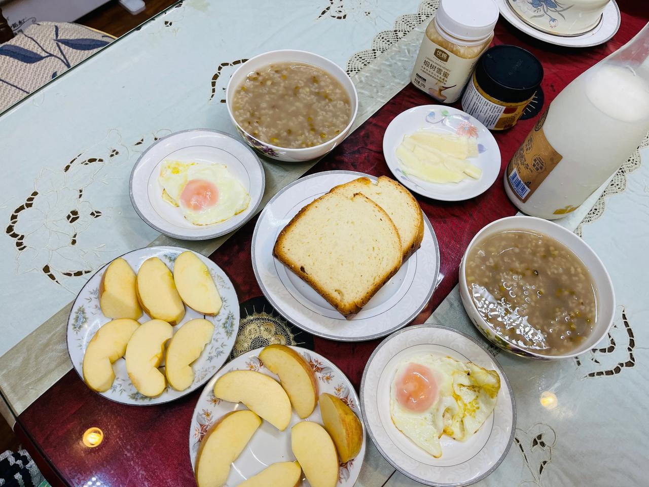 #你早餐喜欢吃饭还是面条或包子#这几样都不喜欢,我们的早餐必须有麦片、牛奶或者驼奶,还要有鸡蛋。有时会吃一片面包,也会吃些水果。