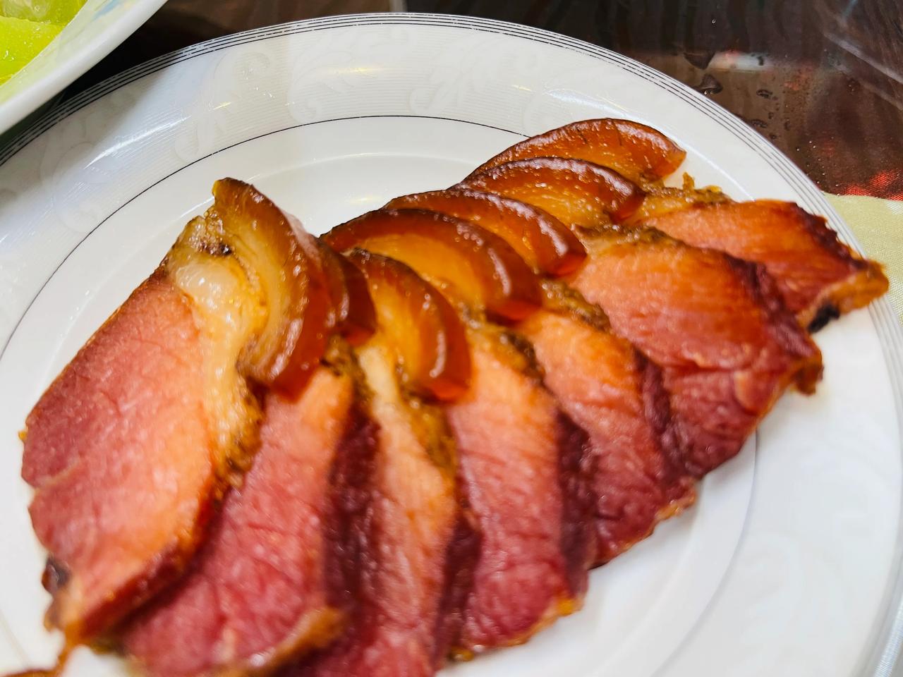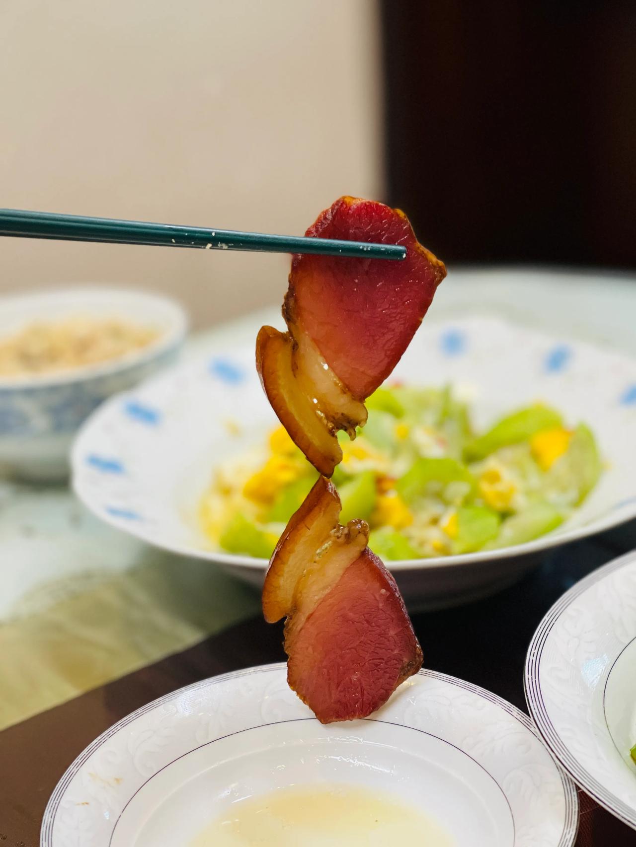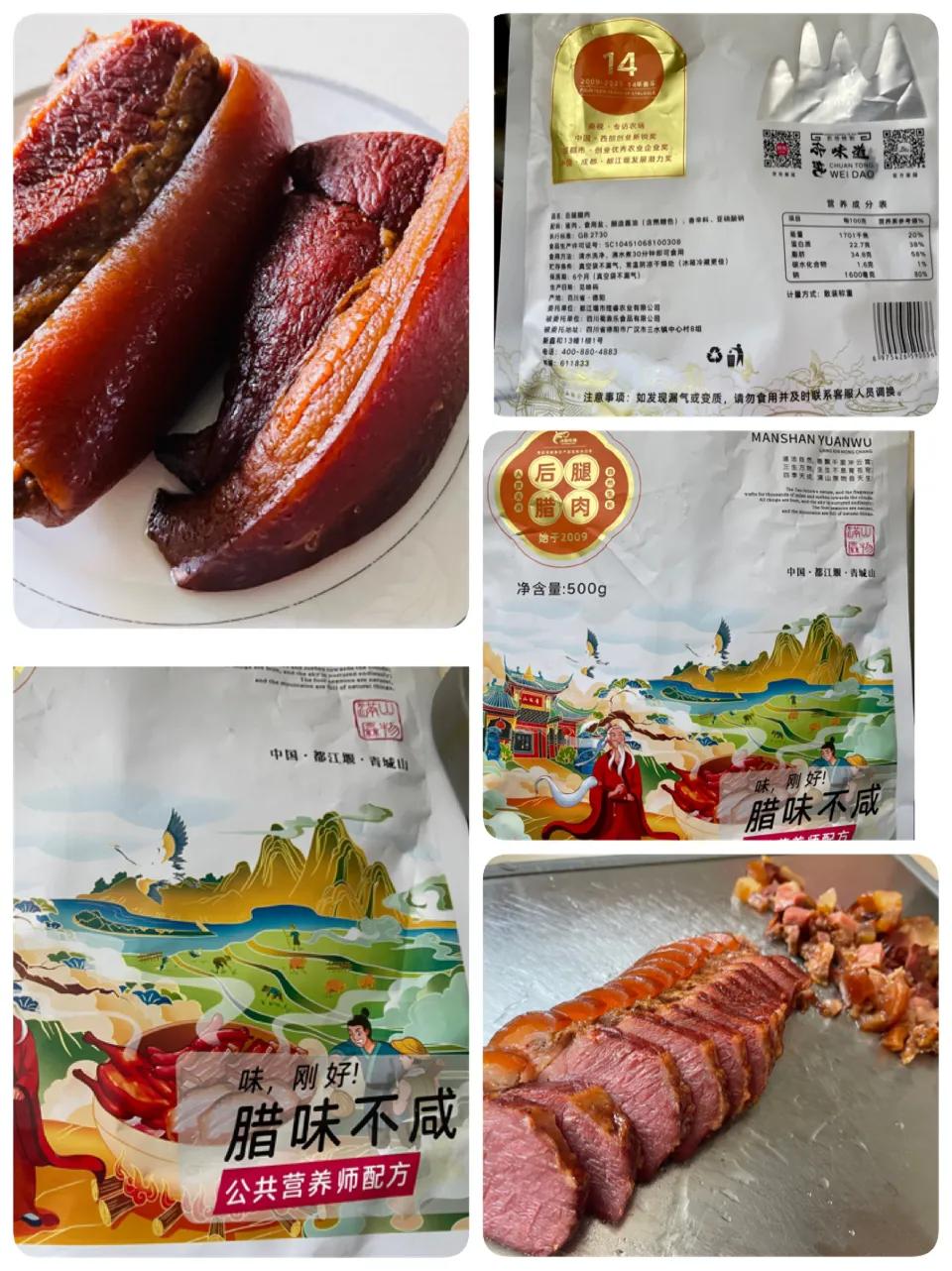 这腊肉太好吃了![星星眼][耶]第一次吃到这么好吃的腊肉![爱慕][爱慕]第一次在厨房做饭菜边做边“偷吃”[爱慕][呲牙][偷笑]这个腊肉只需煮半个小时,关键是它咸淡适宜,过去无论是在餐厅还是吃过其它的都免不了感觉齁咸,这个一出锅就特别香,切的时候猪皮很糯,忍不住尝一片就停不下来了[偷笑][可爱]用一小部分切丁和豌豆、红萝卜一起焖米饭,真是好香啊!把这个肉的包装袋品牌拍下来,做个记录,等以后需要时好买[耶]