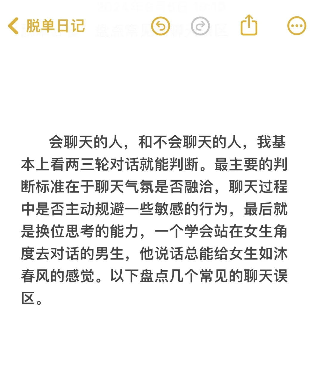 你能否吸引到女生,至少80%的机会来源于日常聊天、沟通,能聊开心你就成功一大半了。让那些企图靠见面、靠表白、靠送礼物去刷存在感的人,想通过这些追到女生的人,都做梦去。 主页🈶更多实用的知识和技巧~