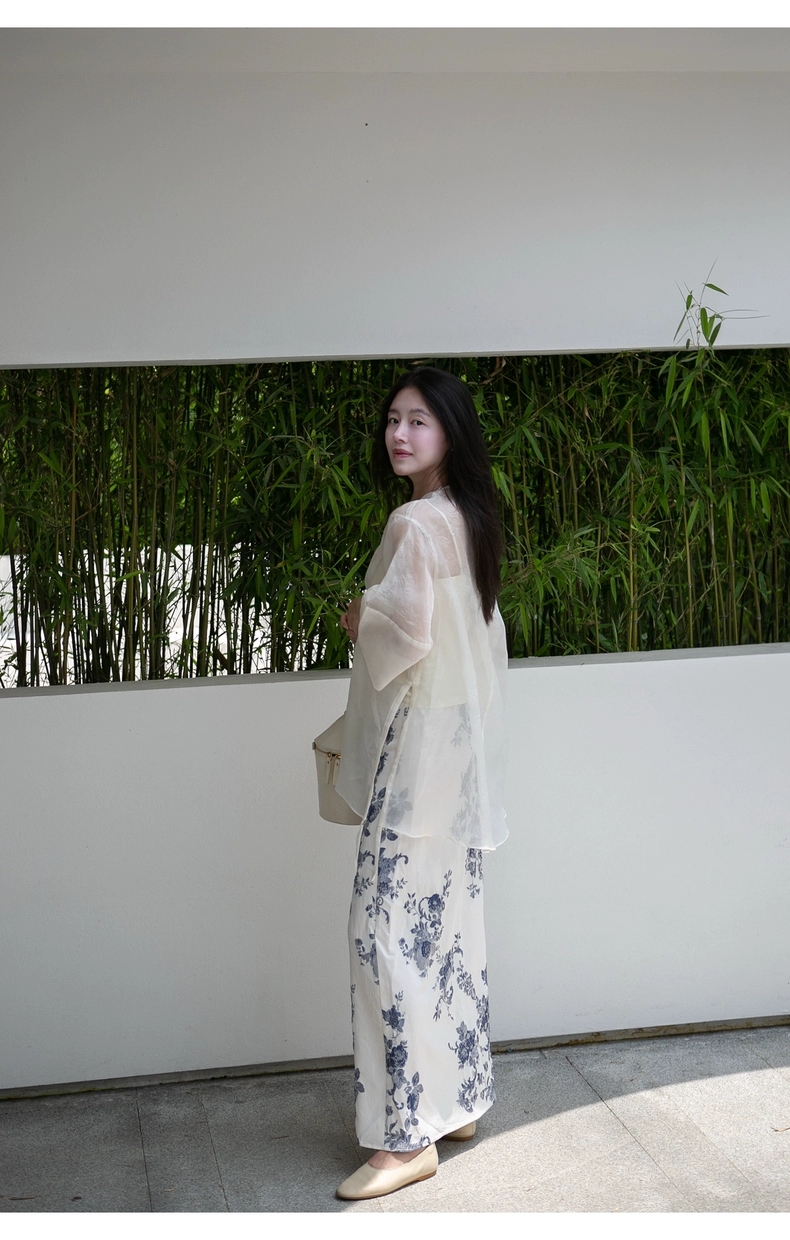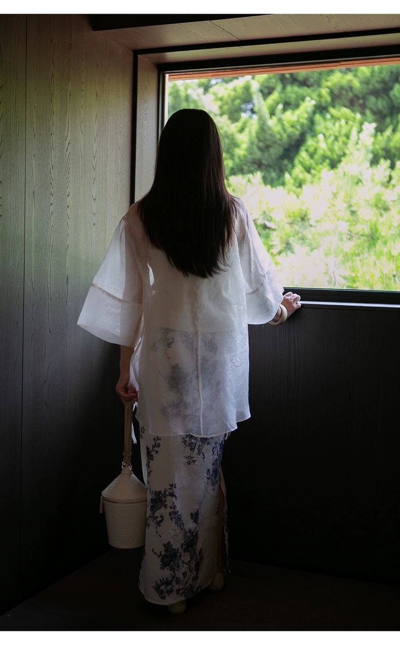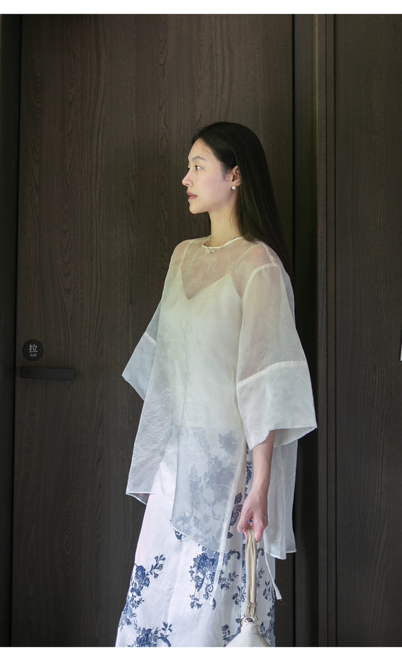 Floating高定 新中式真丝欧根纱提花清冷感薄款透感防晒罩衫上衣