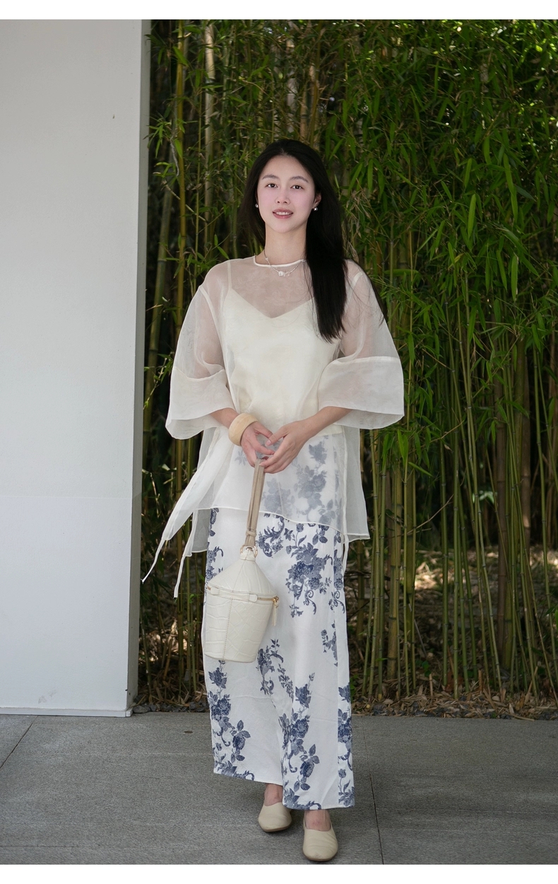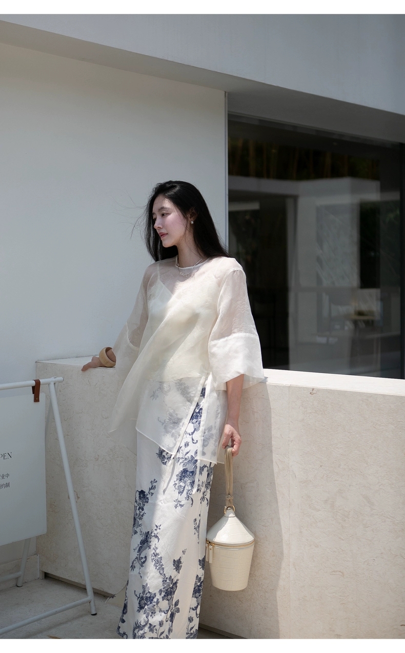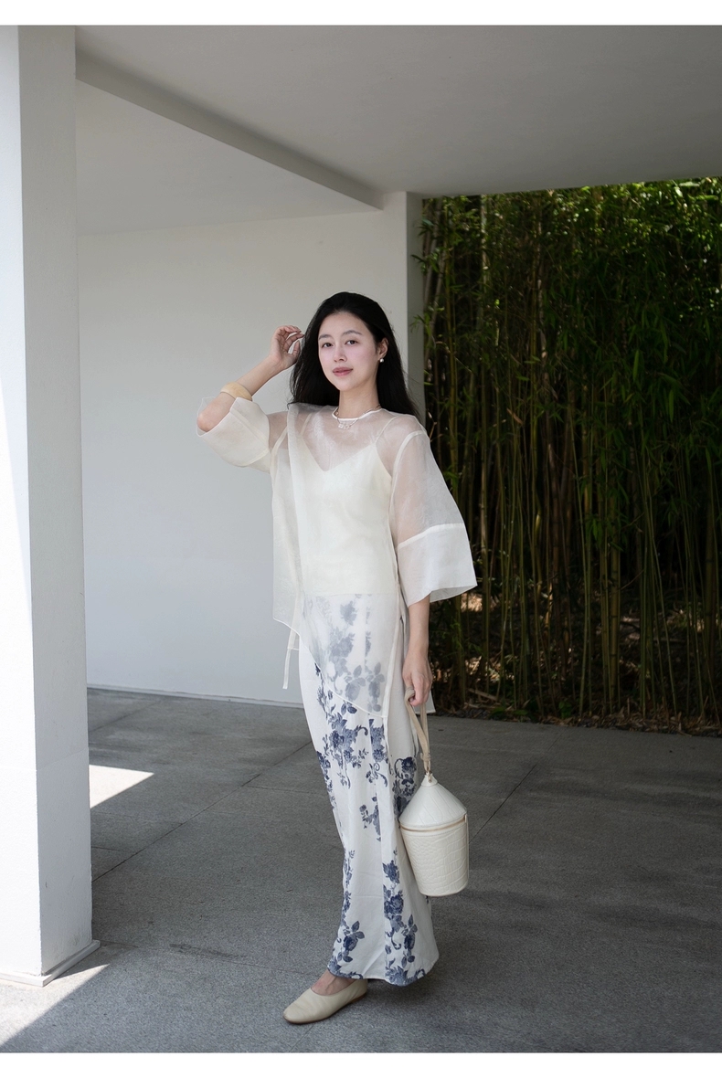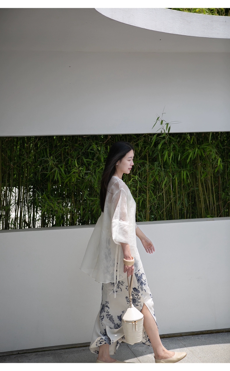 Floating高定 新中式真丝欧根纱提花清冷感薄款透感防晒罩衫上衣