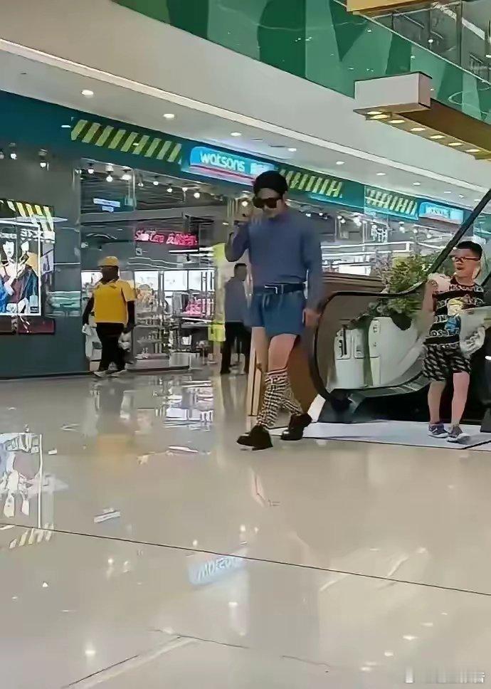 天哪,差点看走眼了,我还以为帅哥的裤子掉下来了。原来是套了一条小孩的裤子……