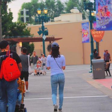 章子怡把女儿醒醒接到身边过暑假了,带儿子女儿去环球影城玩,紧身衣配紧身裤,这穿搭