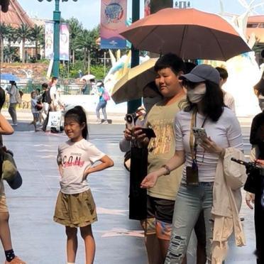 章子怡把女儿醒醒接到身边过暑假了,带儿子女儿去环球影城玩,紧身衣配紧身裤,这穿搭实在是夸不了一点。
