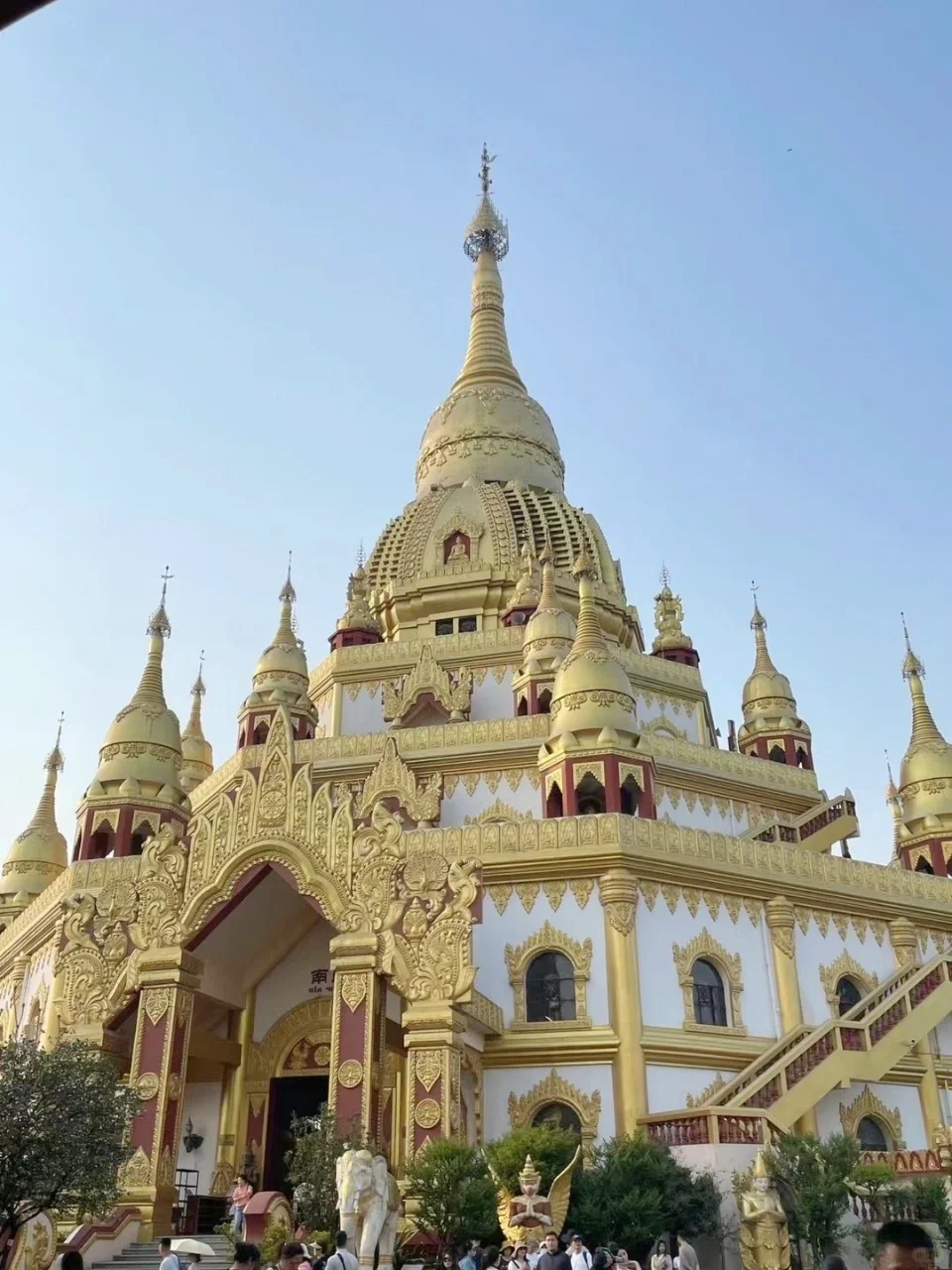 一踏入这片神圣的土地,首先映入眼帘的便是那座巍峨壮观的大金塔,它在阳光下闪耀着金色的光芒,仿佛能洗净世间一切尘埃。🌞 我沿着石阶缓缓而上,每一步都充满了敬畏与期待。站在塔顶,俯瞰整个芒市,那份宁静与美好,简直让人心旷神怡!🌄