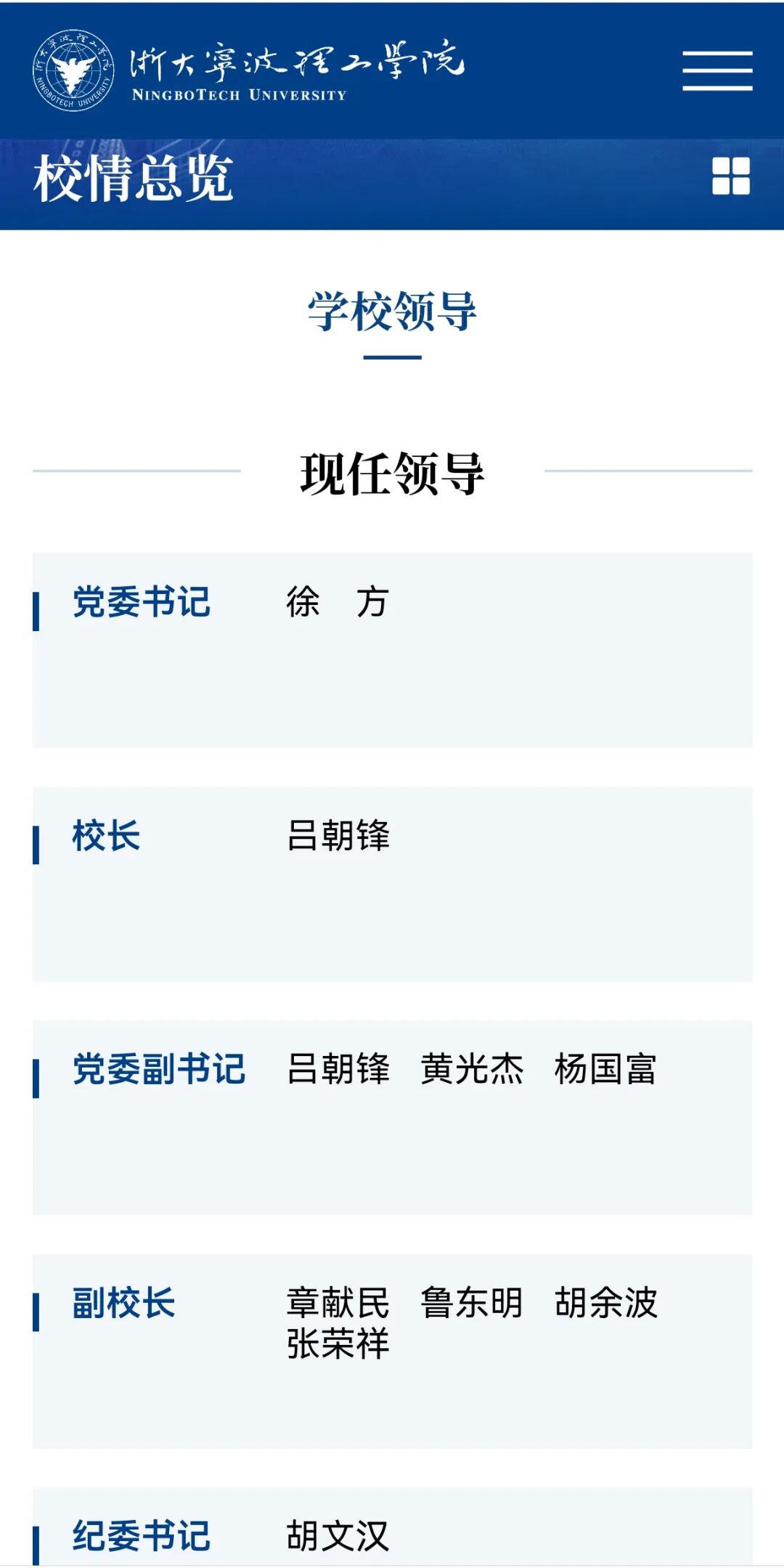 近日,浙大宁波理工学院官网“现任领导”一栏更新后显示,原宁波大学党委副书记、副校长吕朝锋已任浙大宁波理工学院校长、党委副书记。