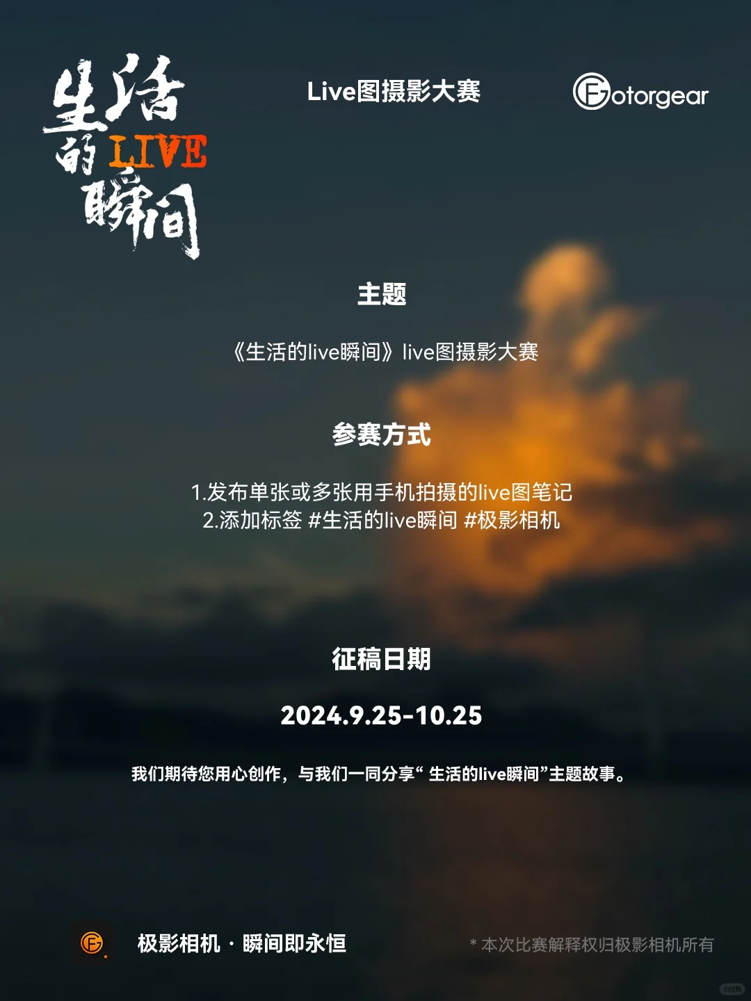 注意!!所有作品均需使用手机拍摄,不接受相机类视频转live的作品投稿哦!