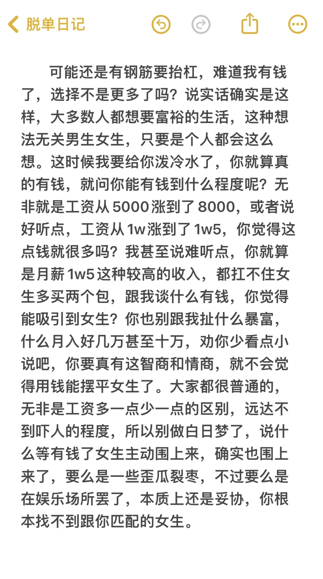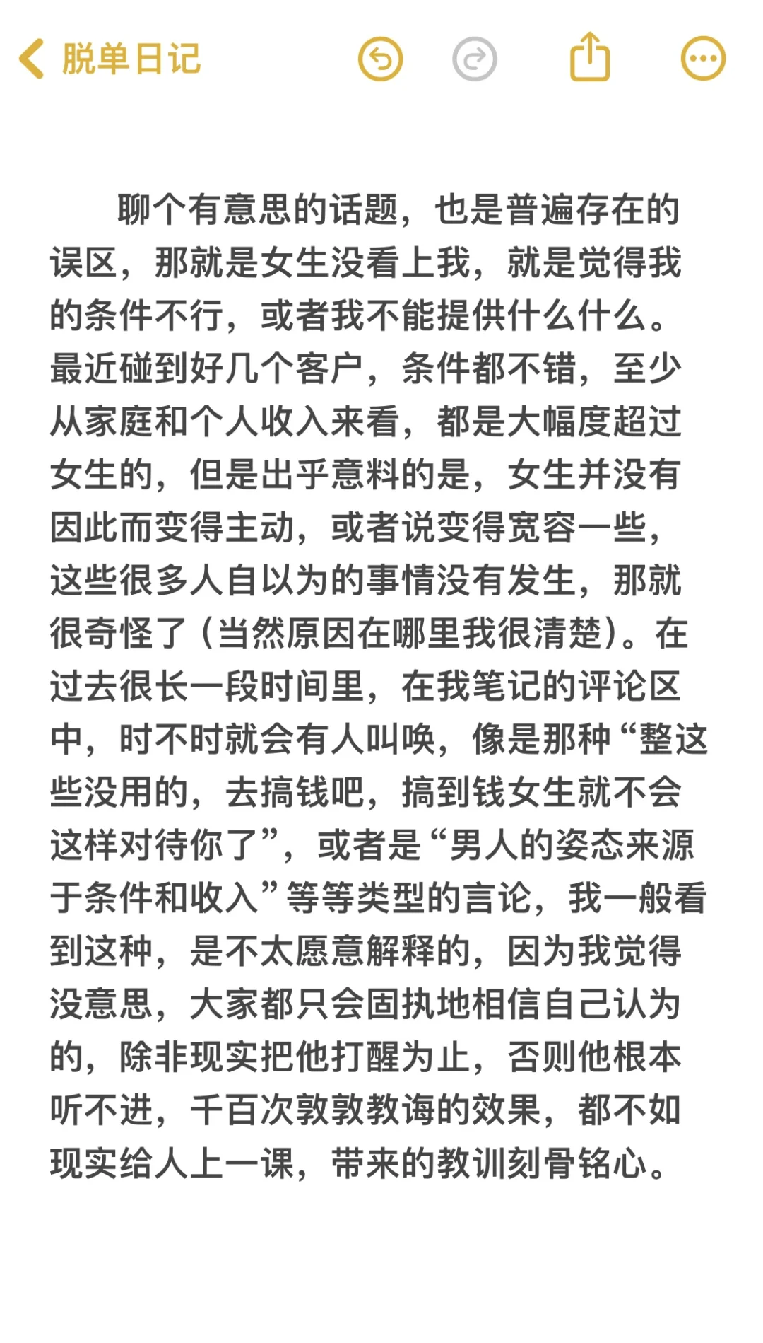 我非常想把几个案例直接搬上来,打一些人的脸,但是考虑到客户隐私的问题,我确实不能往外公开,至于有些人对自己的观念多坚定,没什么好说的,继续保持就行。但凡多和女生接触,多跟几个女生探讨一下,我相信会有所改观。