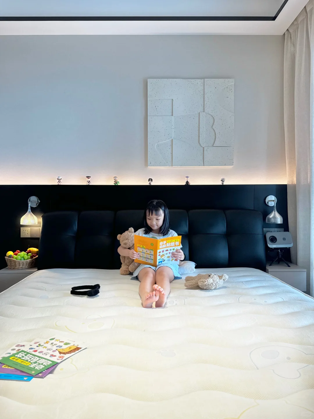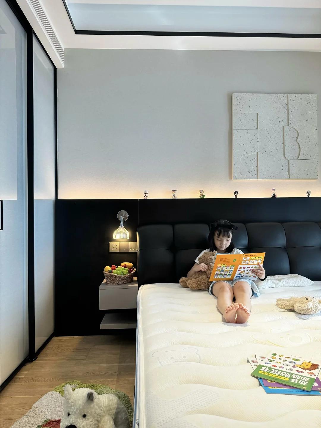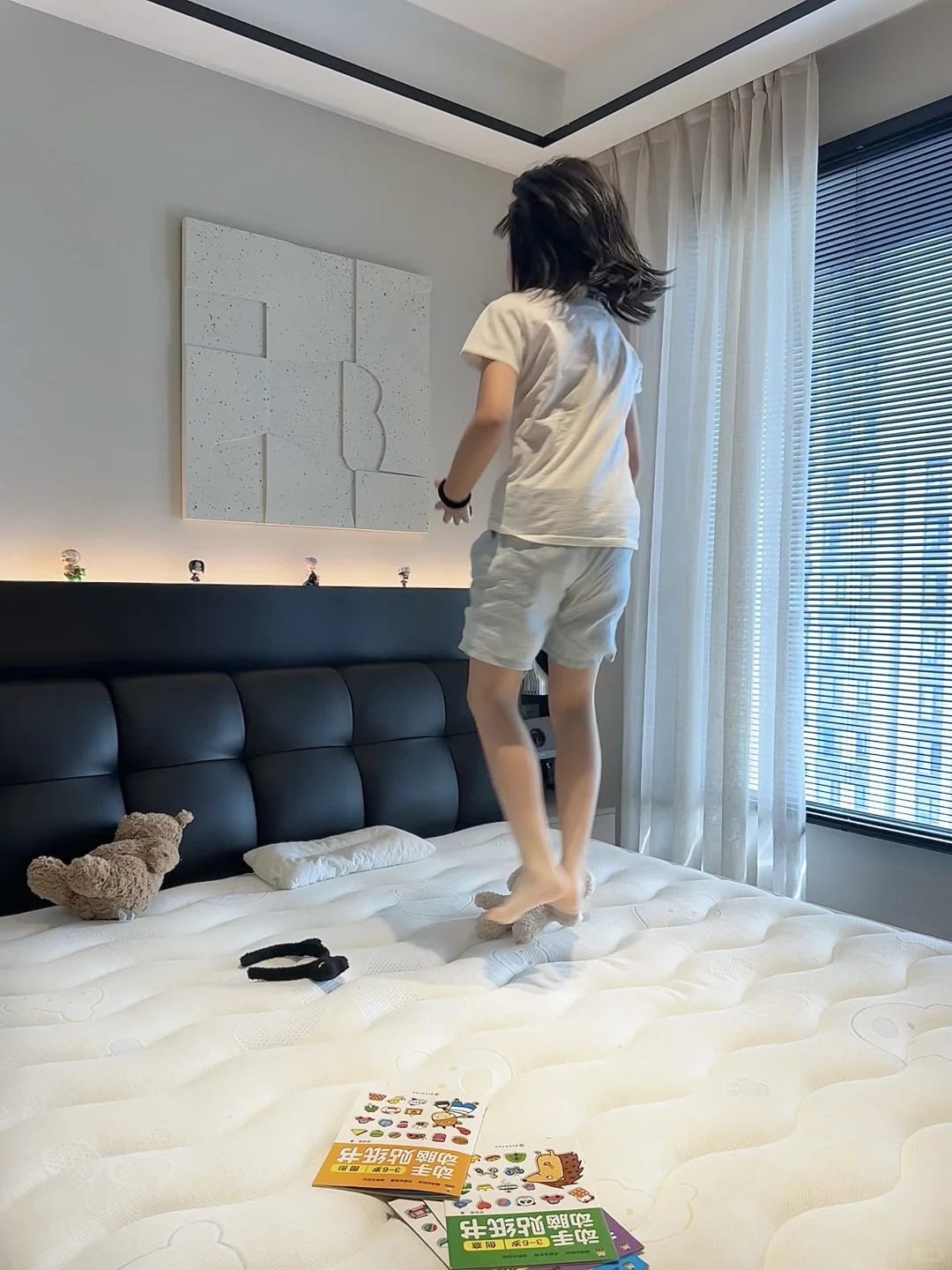 儿童房也布置好了,心里建设也做了,可是晚上一关灯一关房门就说怕。半夜还会跑主卧来睡🤦‍♀ 实在于心不忍,所以把主卧简单布置了下。 铺了草地地毯也放了书架。为了她能睡的舒服,把床垫也换成了儿童床垫。 这次我选择的是上海之恋 KID+儿童床垫,我选择这款的原因是: 📕首先,它有权威检测机构检验,防螨抗菌无异味,而且是0 胶水的用着比较安心。 🛏其次,它有精准的七区独立袋装弹簧,能为身体的每个部位提供支撑力,更好地保护孩子的脊椎健康,孩子也能睡的更舒服。 🌟再者,它的面料很亲肤,面层还可拆下来,就再也不怕小孩把床垫弄脏了。定期丢洗衣机晾晒清理一下,干净又卫生。 💖最后,它有百日免费试睡,喜欢又有顾虑的姐妹们也都可以试一试。我当初就是抱着试试的心态,没想到收到很惊喜,娃也特别喜欢,每天在床上蹦蹦跳跳,睡的也很安心。 为了让孩子睡好觉,有安全感,我们决定暂时还是不强迫症她分床睡了。