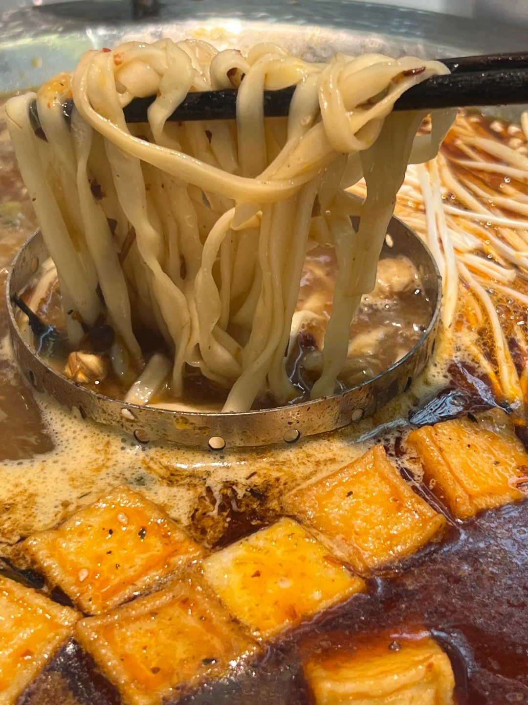 吃完以后还可以来一份手工面,吸足了锅底的鲜味,真的巨好吃,非常爽口!