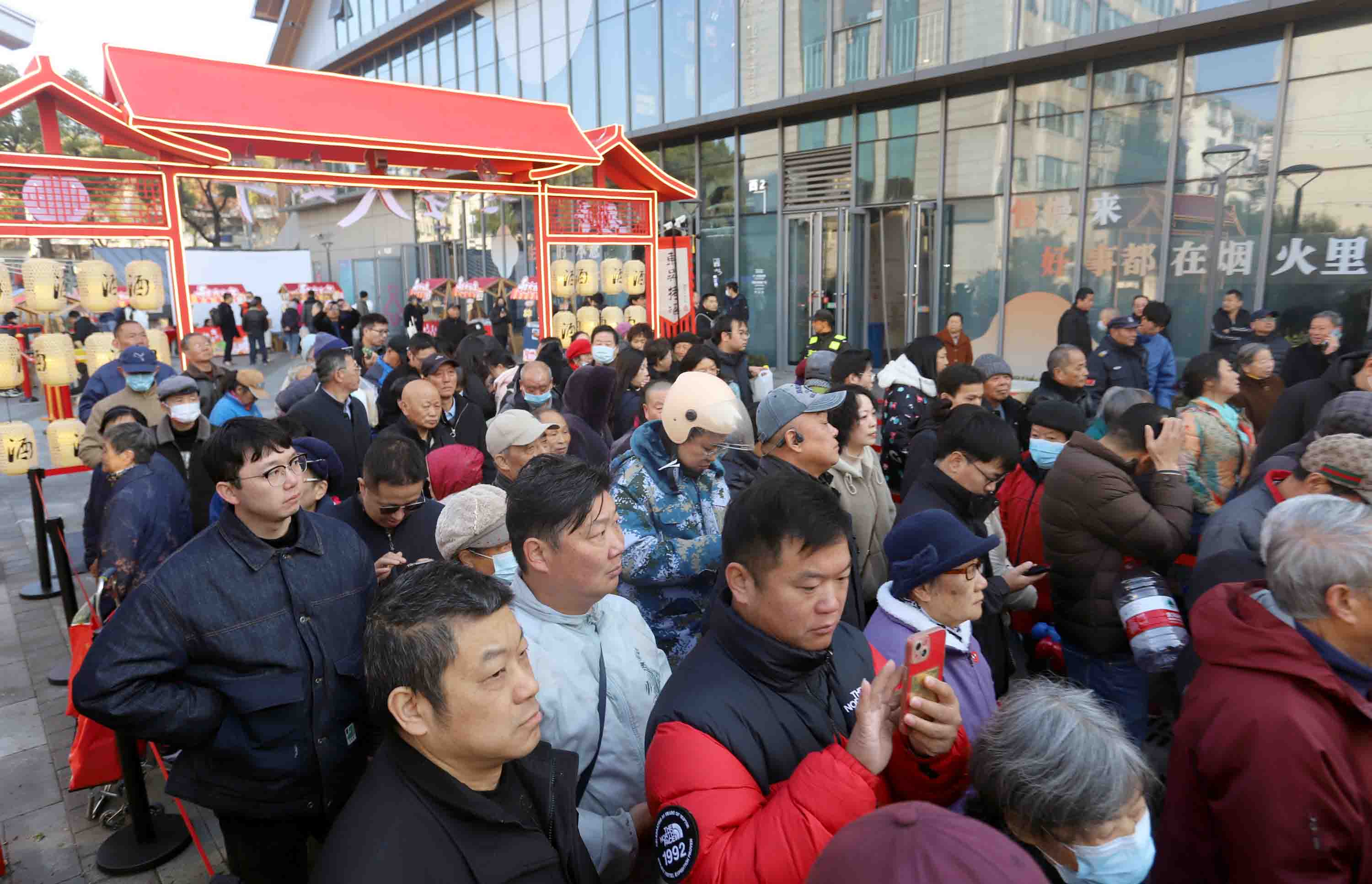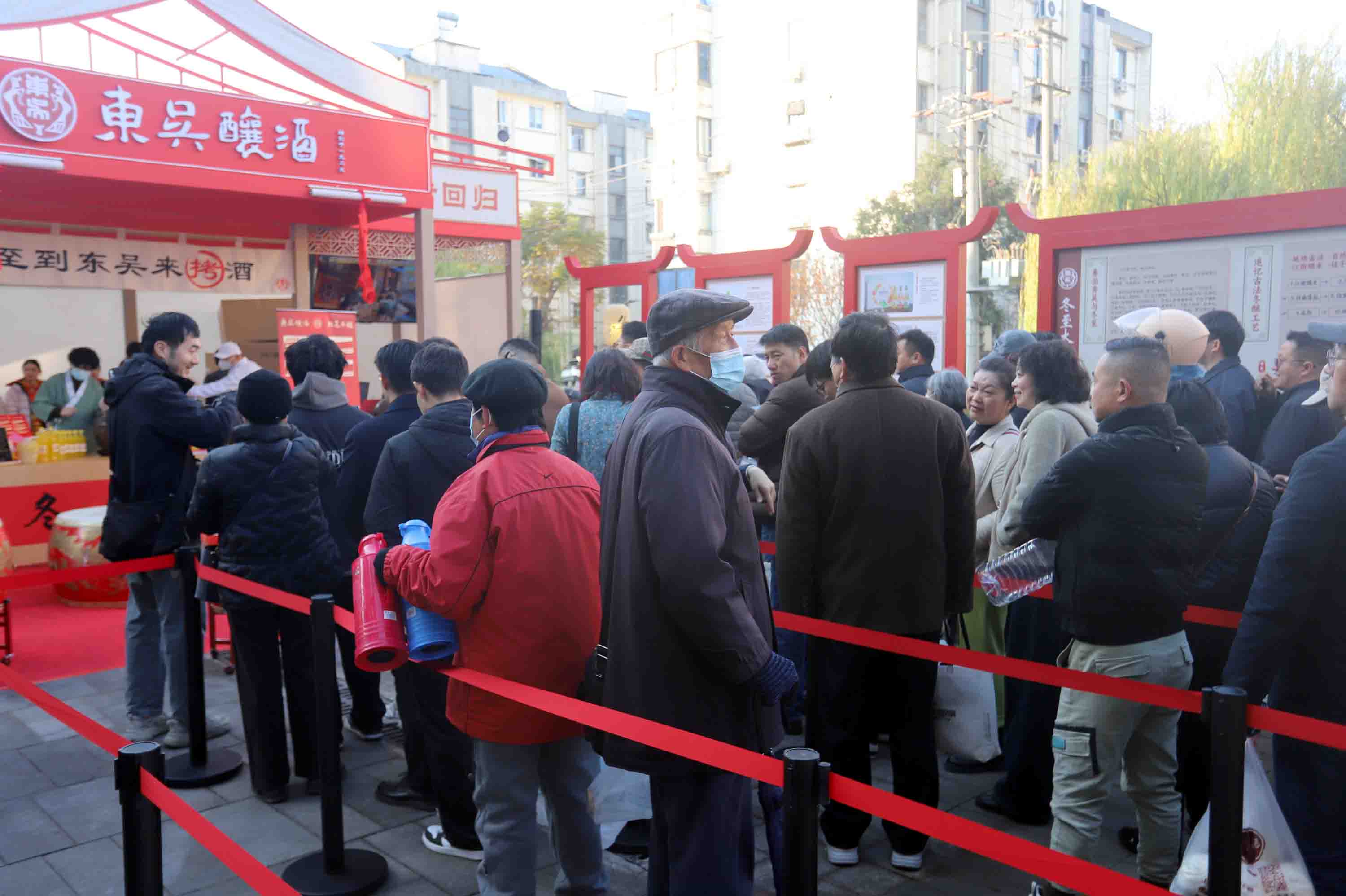 “冬至夜喝冬酿酒”是刻在苏州人骨子里的年俗,“冬至大如年”的说法,让这坛甜酒成了冬日里最盼的滋味。仪式刚落,排队的市民就攥着空酒瓶往前凑:“等了好多年,就想找回拿瓶子零拷百年东吴老味道!”