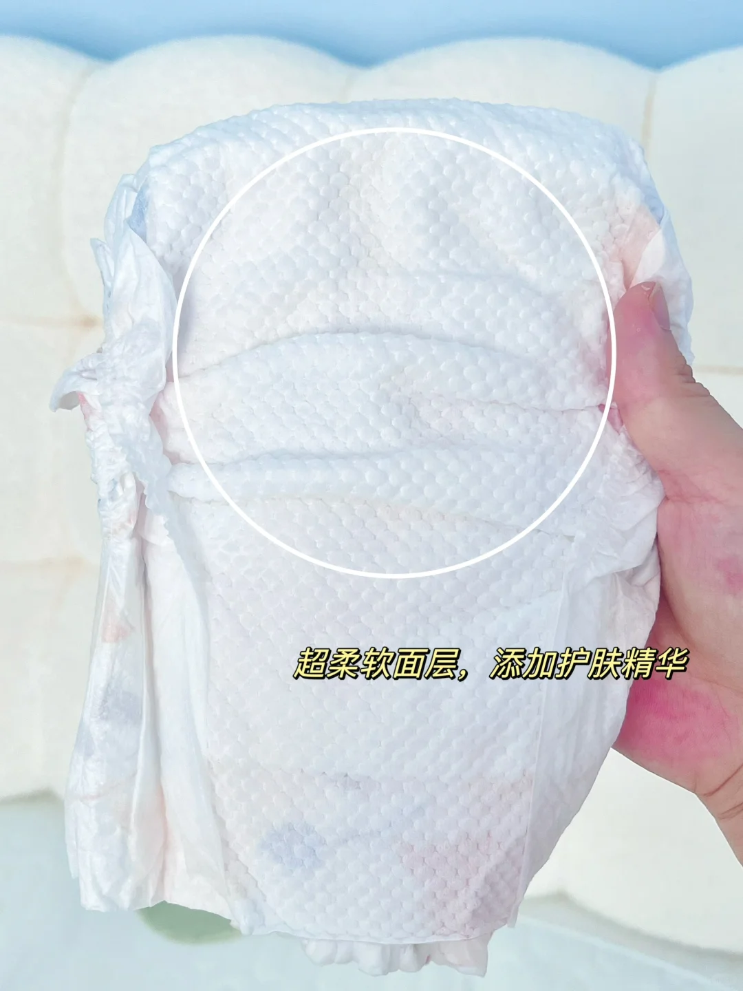 💕面料也是超级柔软,0.8D 极细丝纤维加上热风织就的柔糯手感,宝宝穿上就像被云朵包裹着一样。而且精选的阳光美棉和大和纺织的珍珠柔点面层,能减少 pp 一半的接触面积,大大减少了摩擦,宝宝的 pp 变得光滑又干爽!