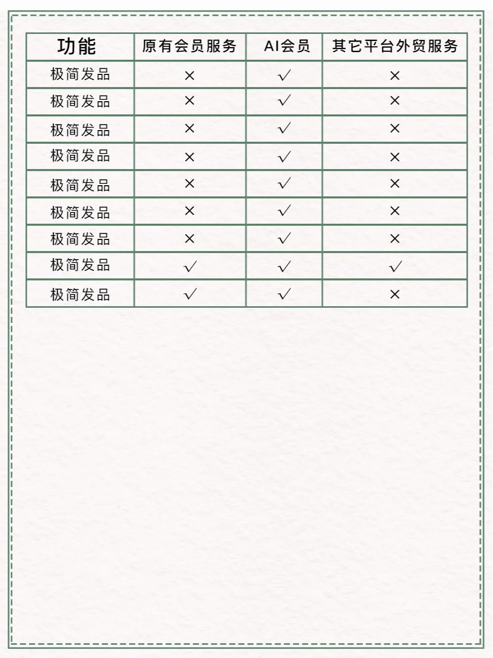 功能 原有的会员服务 AI会员 其它平台的外贸服务