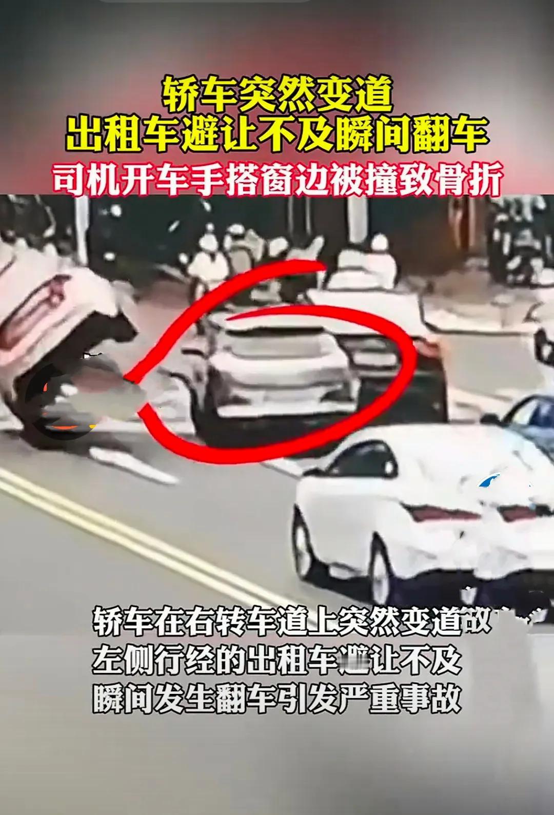 9月14日的浙江温州,一场突如其来的车祸让人心惊胆战。在道路上,一辆轿车于右转车道毫无征兆地变道,这一鲁莽行为让左侧正常行经的出租车根本来不及避让。刹那间,出租车翻车,场面十分惨烈。 出租车司机当时手臂搭在车窗,侧翻后遭遇双重折磨。手臂先是与地面剧烈摩擦,而后又被沉重的车身压住,直接导致骨折。此次事故的破坏力极大,三辆车均受到不同程度的损害。幸运的是,出租车驾驶员系了安全带,这小小的安全带成为关键的保命符,避免了更严重的伤亡。这起事故警示着每一位驾驶者,遵守交通规则至关重要,一个随意的变道动作,可能就会引发如多米诺骨牌般的灾难,威胁自己与他人的生命安全。#车祸惨象引热议# #车主悲剧时刻# #车主悲剧经历#