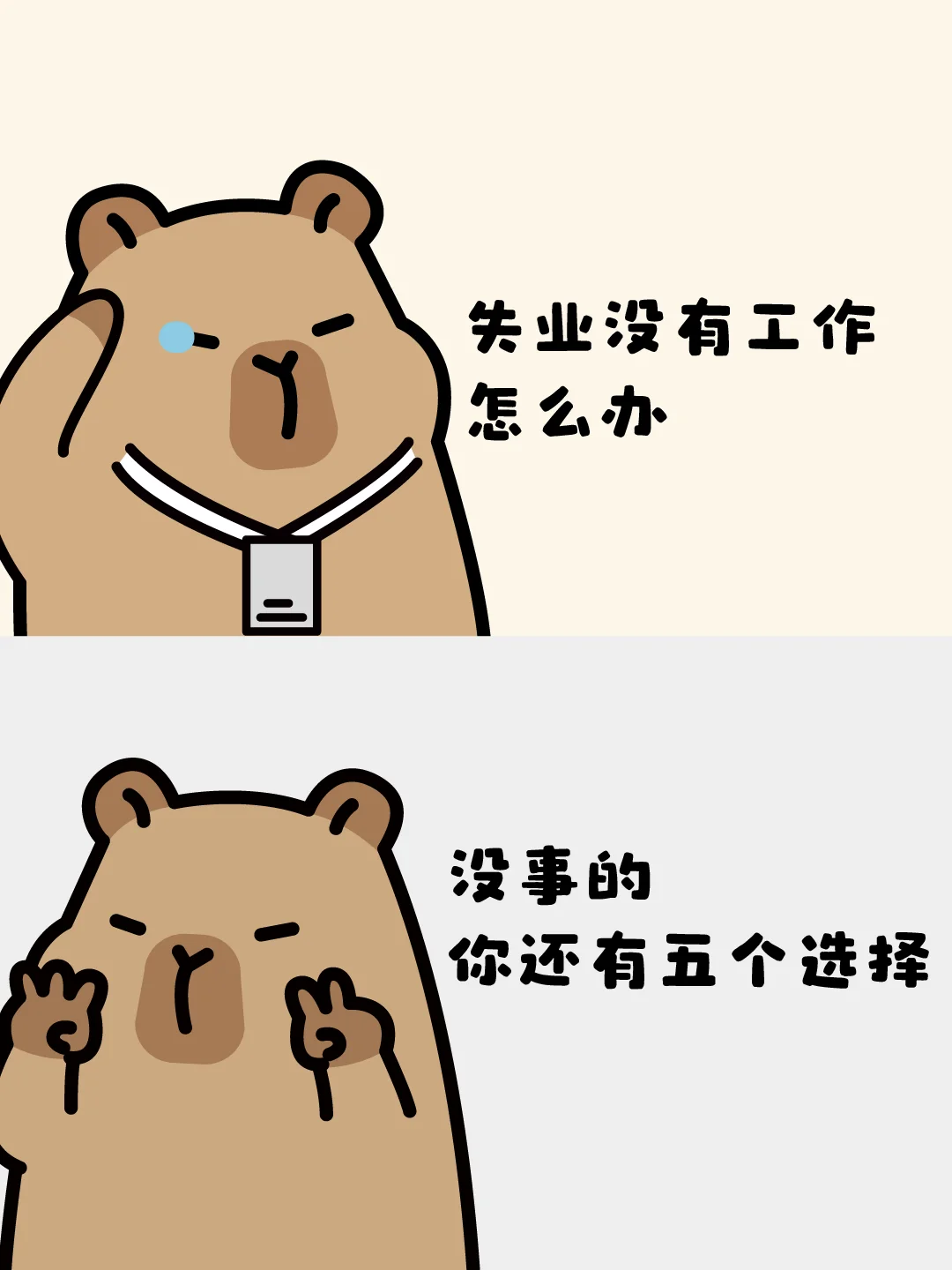 当下失业人五步曲: 1️⃣先去考研考公考编,把自信耗光[扯脸H] 2️⃣再去摆摊开店自媒体,把存款花光[哭惹R] 3️⃣然后去干外卖快递滴滴,把身体拖垮 4️⃣最后去当保安保姆保洁,把尊严丟没[可怜R] 5️⃣最最最后买彩票把运气耗光[再见R]