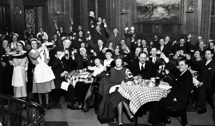约1933年,芝加哥俾斯麦酒店内,德裔美国人庆祝禁酒令废除。