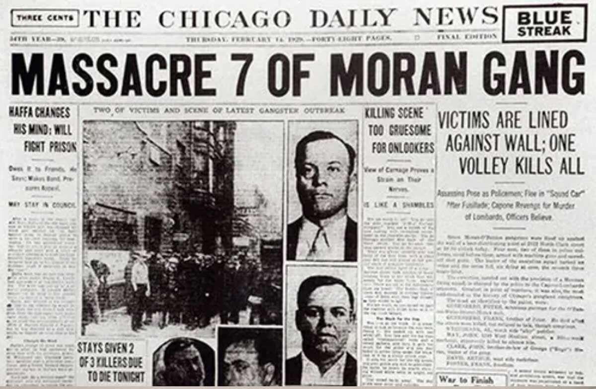 1929年,《芝加哥每日新闻》关于情人节大屠杀的头版报道,藏于拉斯维加斯黑帮博物馆。