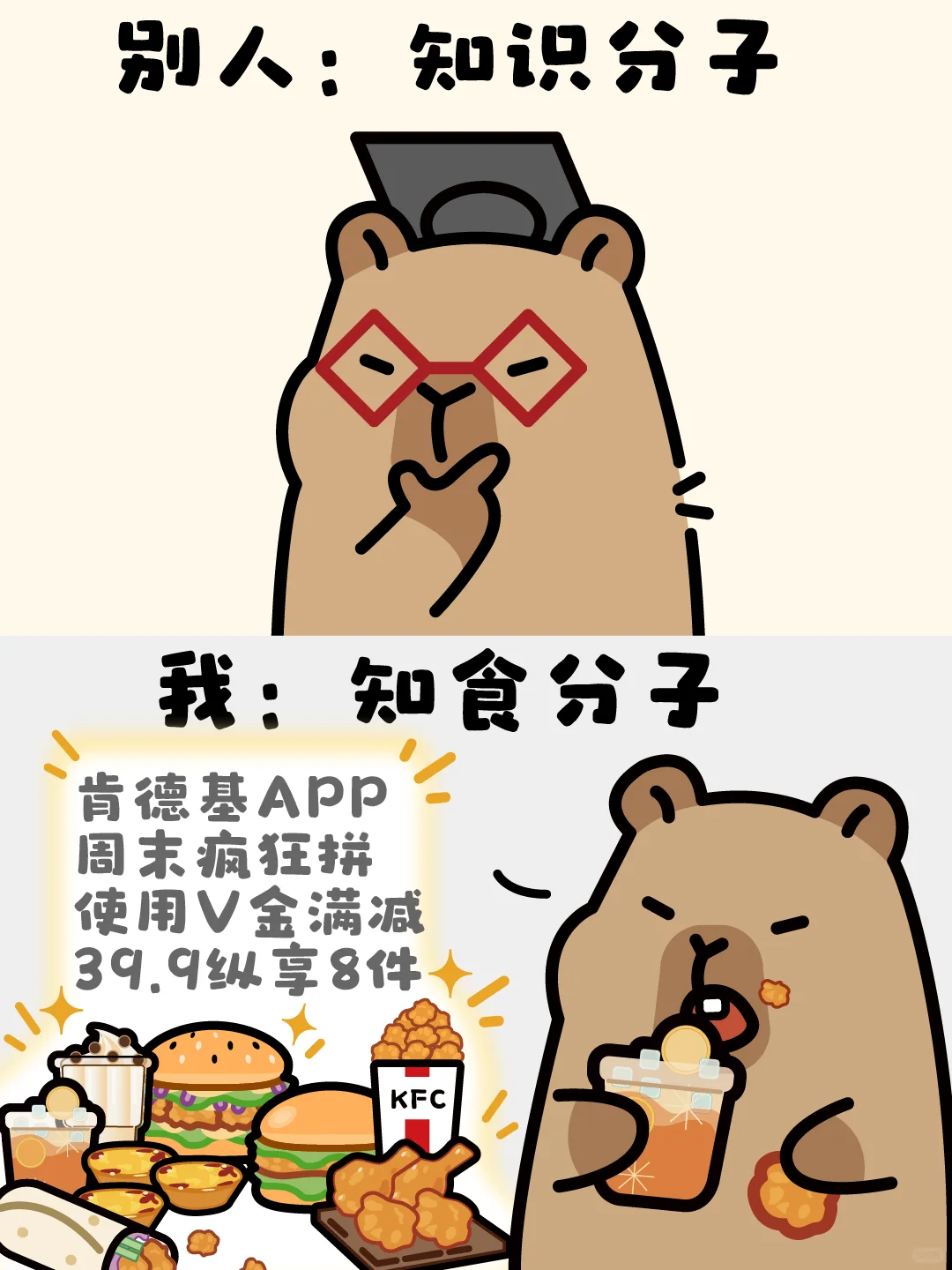别人家的孩子全方位成功 我吃的很成功[吧唧R] 肯德基周末疯狂8拼[哇R] 使用V金满减后39.9享受8种美味[喝奶茶R] 这何尝不是一种成功呢[害羞R]