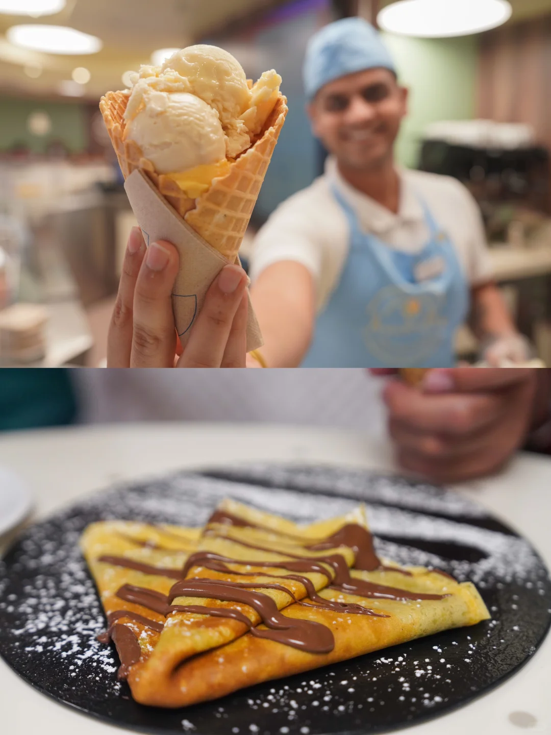 意大利特色美食,还有5层的意大利雪糕,意式风味咖啡很特别,小杯分成三层,分别是奶油、巧克力和特浓咖啡,入口香滑;以及现场制作的馅饼都值得一尝喔。