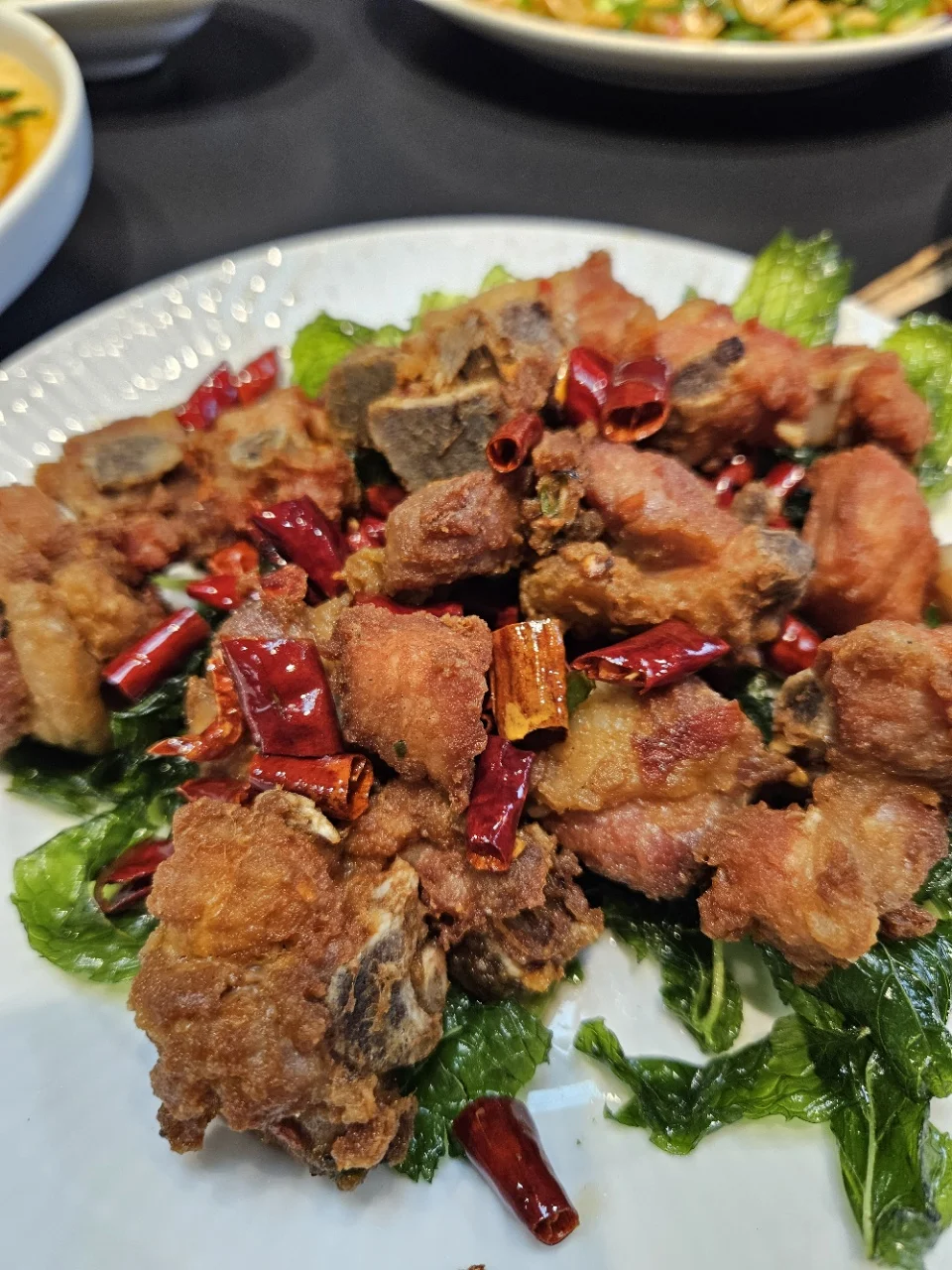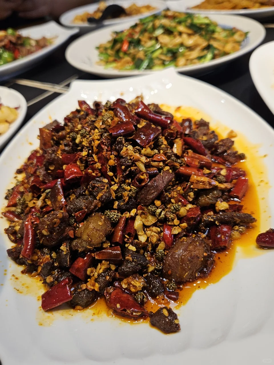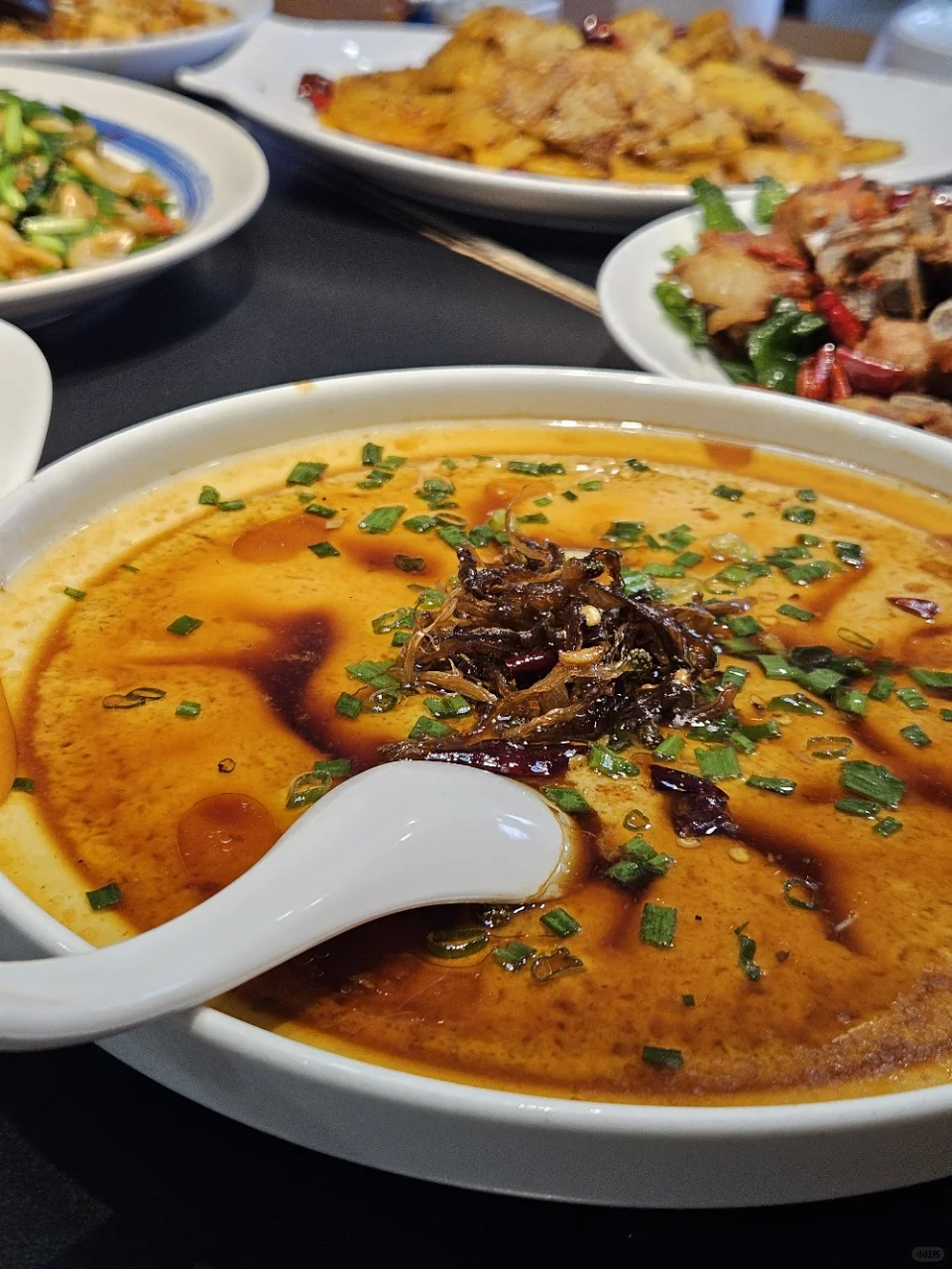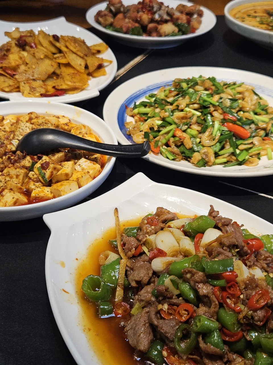 🥰今天和朋友在顺城附近发现一家超棒的川菜小馆 —— 慕名厨房😎。我们五六个人点了个套餐,简直太划算啦💯。 🌿店铺装修简洁大方,一共有三层呢。三楼是包间,环境很不错👏。 我们五六个人点了一个套餐,没想到菜品丰富得超乎想象💯。🥘首先要夸夸小米辣炖牛肉🐂,牛肉炖得超级入味,每一块都饱含着浓郁的汤汁,吃起来那叫一个过瘾。还有香辣牛肉丁,一口下去,香辣的味道在口中散开,越嚼越香。麻婆豆腐更是川菜中的经典,这里的麻婆豆腐麻辣鲜香,非常下饭😍。干椒洋芋🥔也很不错,外皮酥脆,里面软糯,带着淡淡的辣味。 不得不说,这家店的上菜速度超快🚀,而且服务态度也特别好,店员们都很热情周到🥰。