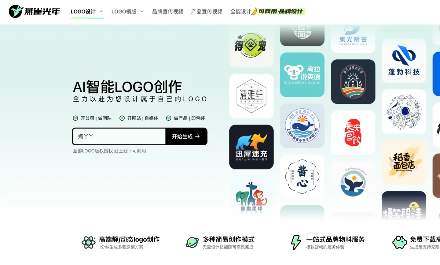 现在就访问 yanqueai.com,体验燕雀光年的设计魔法,以极低的成本,开启你的品牌之路。