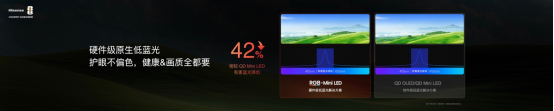 更贴心的是健康与环保双在线,硬件级原生低蓝光设计,有害蓝光降低 42%,护眼还不偏色;整机功耗降低 30%,还摒弃了有害重金属,打造绿色观影环境,老人孩子看久了也放心。