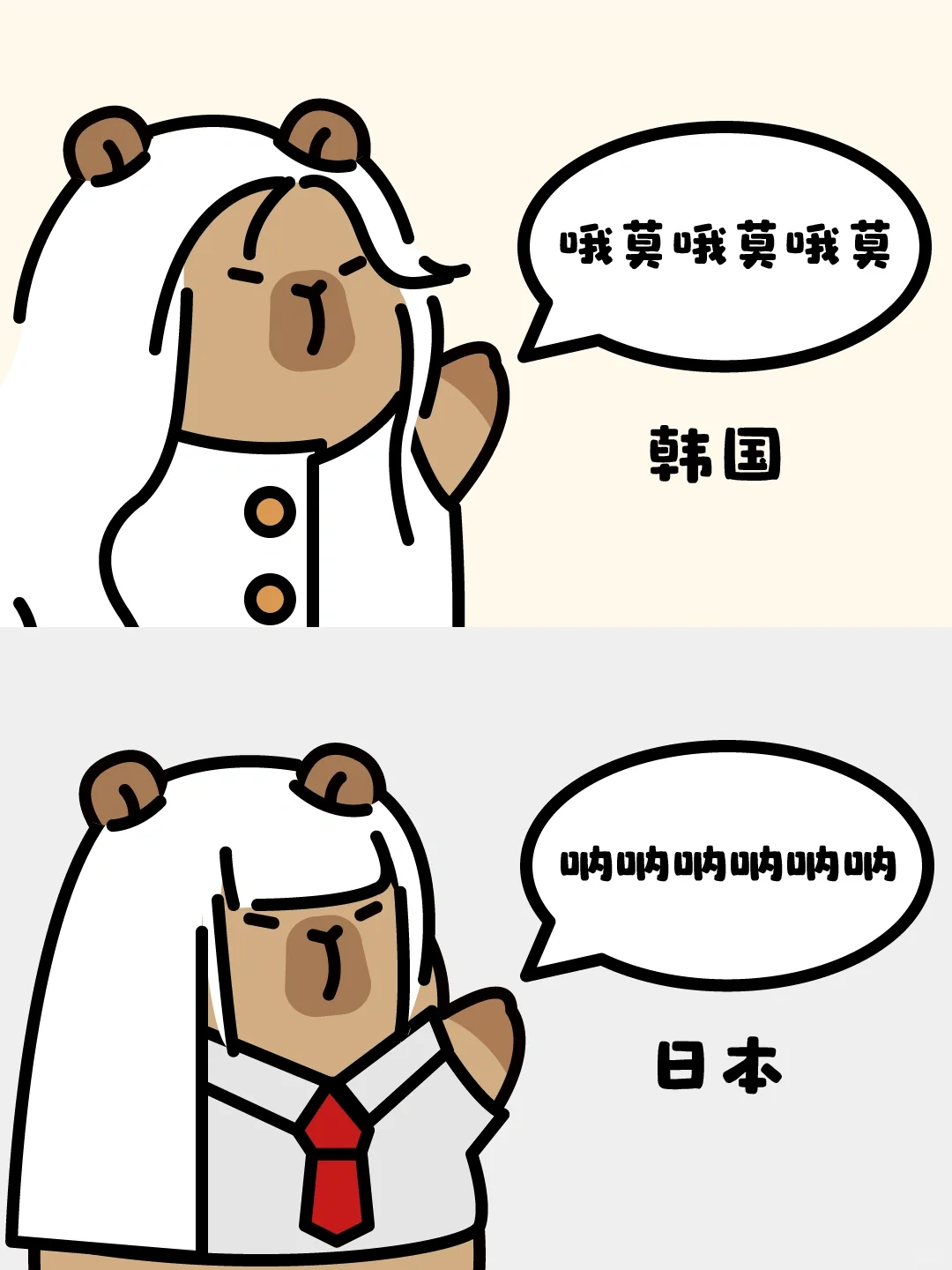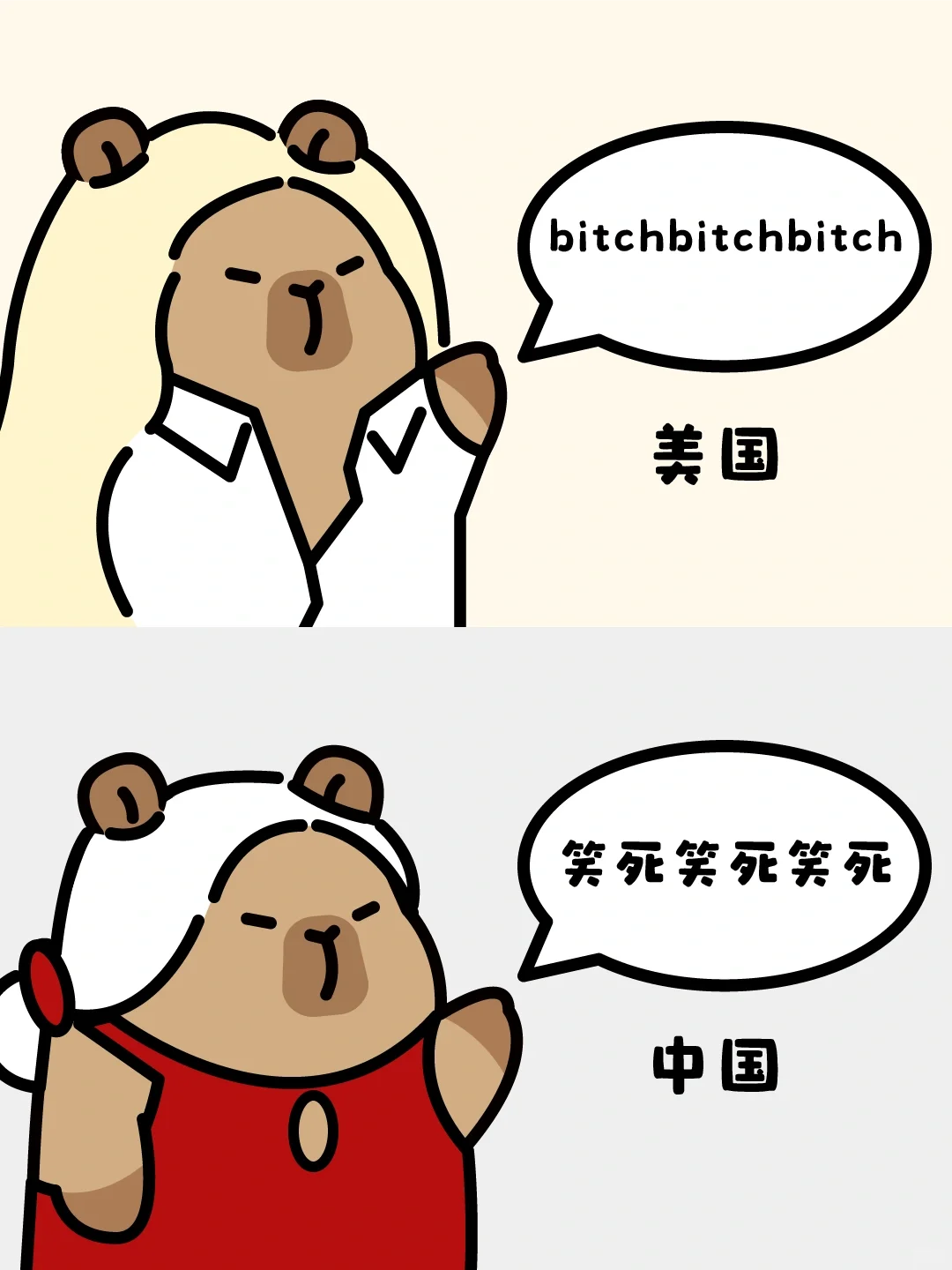 中日韩美四国女生开口说话-卡皮巴拉表情包