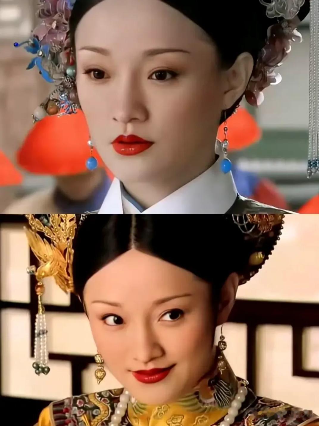 如懿头上这两根翡翠簪子真的很多余,只戴钿子就已经很好了,戴上簪子就没了主次。她的钿子做小了,正确的尺寸是包住整个头,就像嬛嬛戴的那样,不是像如懿戴的,把钿子戴的像碗一样扣在头上。