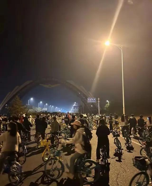 夜幕下,一场震撼人心的旅程在郑州与开封之间展开。一群郑州大学生,喊着“青春没有售价,单车直达开封”的口号,踏上单车,向着开封进发,而这一行程,需要四个小时。 令人瞩目的是,有“帽子叔叔”开着警车,在骑行队伍后方默默跟随守护。那闪烁的警灯,如同黑夜里温暖的灯塔,给这场青春的冒险增添了别样的色彩。学生们用力蹬车的身影,是青春活力的彰显;而警车的守护,是责任与爱的交织。 在这四个小时里,有汗水、有坚持,更有那无言却有力的守护。青春的热情在公路上燃烧,而“帽子叔叔”的守护让这份热情更加安全地绽放。这是一场属于青春的狂欢,也是一曲守护与被守护的赞歌,在夜风中传扬。#单车直达车开封# #一亿人都在开封# #开封杞县很有爱# #加油郑州学子#