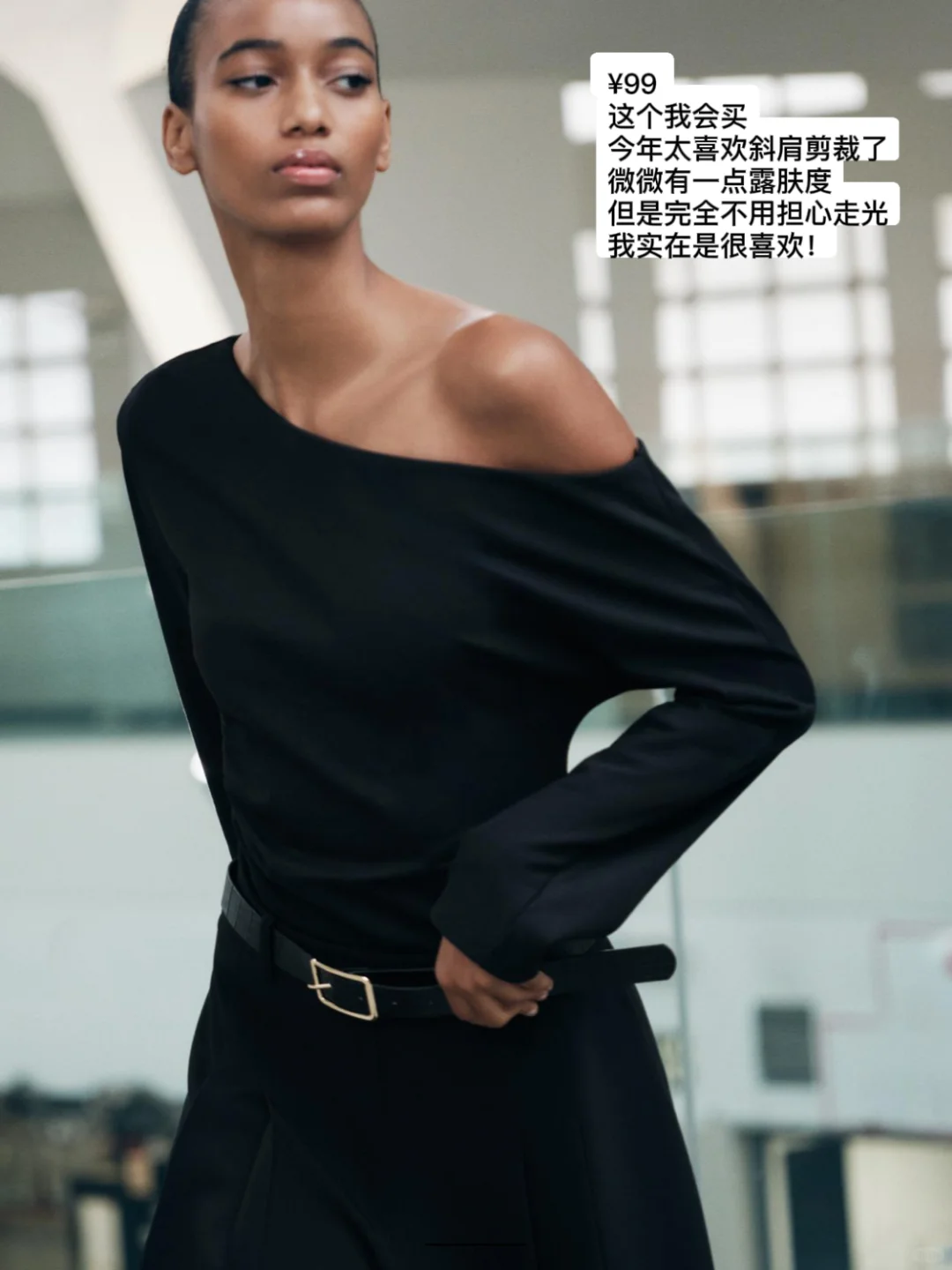 ▪️Zara的斜肩长袖T恤,是张婧仪和孙千的类似款,简单搭配一条直筒裤就很时髦,而且很显瘦(亲测cotton on短袖款,真的很显薄!)