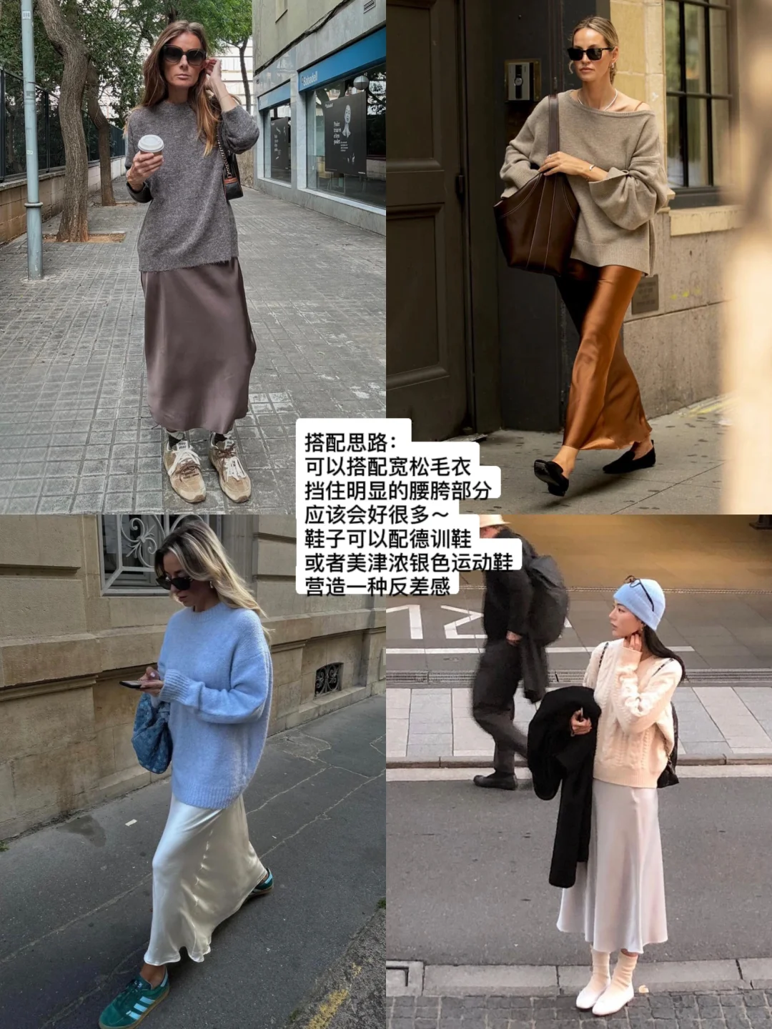 ▪️缎面半身裙只要100多!今年我真的很想试试,虽然知道会显胖,但我可以用宽松的毛衣针织衫盖住腰腹部位,应该会好很多~ 韩国的博主(我忘记名字了不好意思)搭配了baby blue的帽子和芭蕾舞鞋,很可爱!我应该会试试搭配毛茸茸的围巾帽子来增添减龄的感觉