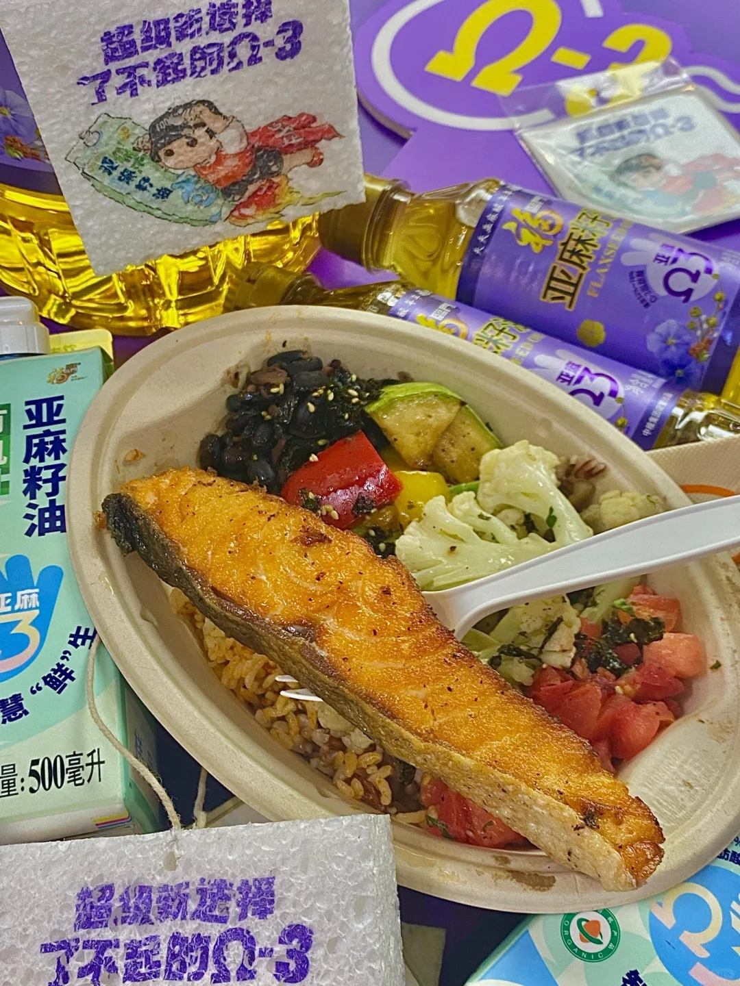 他们家每份产品都包含了碳水化合物、蛋白质、植物纤维…不仅如此!菜品中还🈶让我健康的㊙️!就是使用了富含Omega-3的福临门亚麻籽油!里面包含了人体每日所需健康元素,还有多重必需脂肪酸 。Omega-3对大脑和眼睛👁️都起到了保护作用✔️
