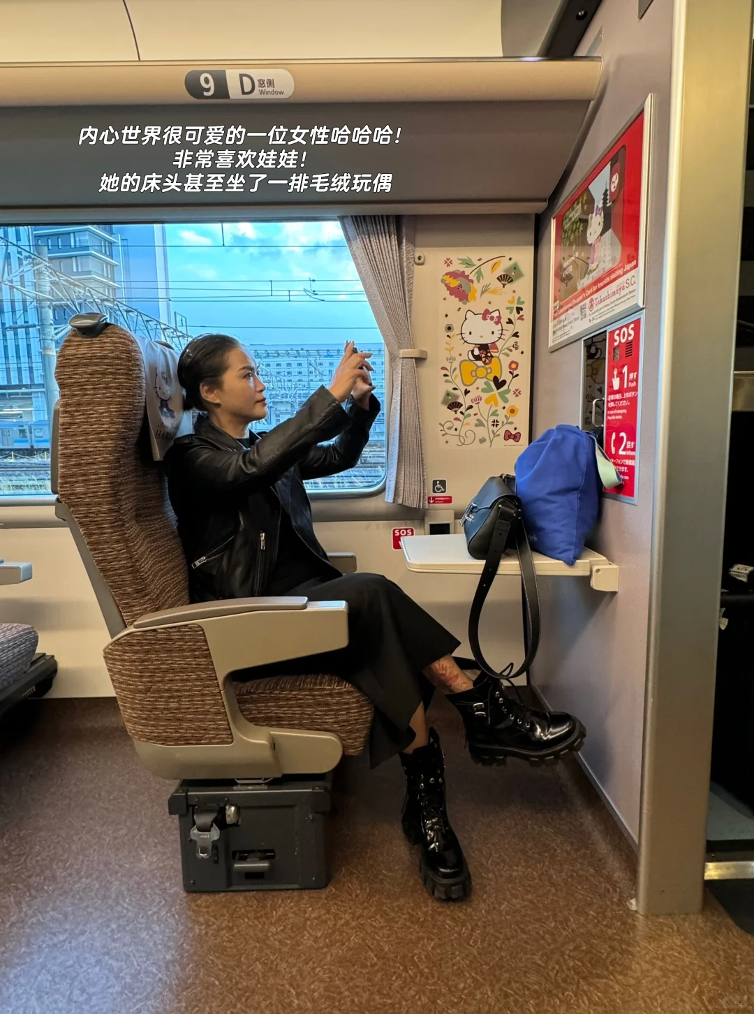 🐱2-3 Haruka Hellokitty专列上非常少女心的女士。大家从大阪去京都可以提前线上预定Haruka,到机场直接换兑换券不用排队超丝滑直接到京都!