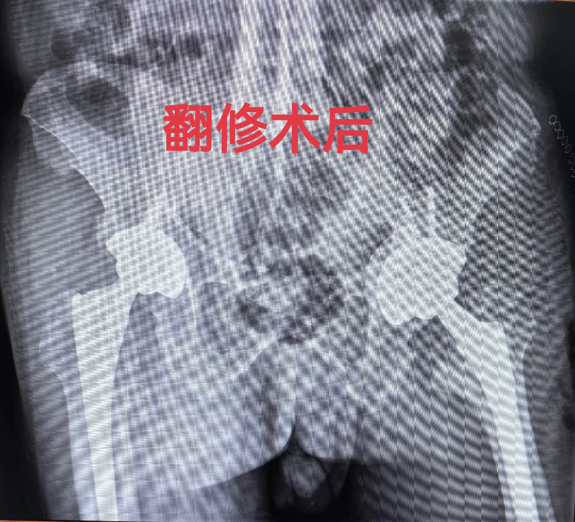 髋关节翻修。强脊炎THA后假体松动,术前短3cm,术后等长。难点:松动...