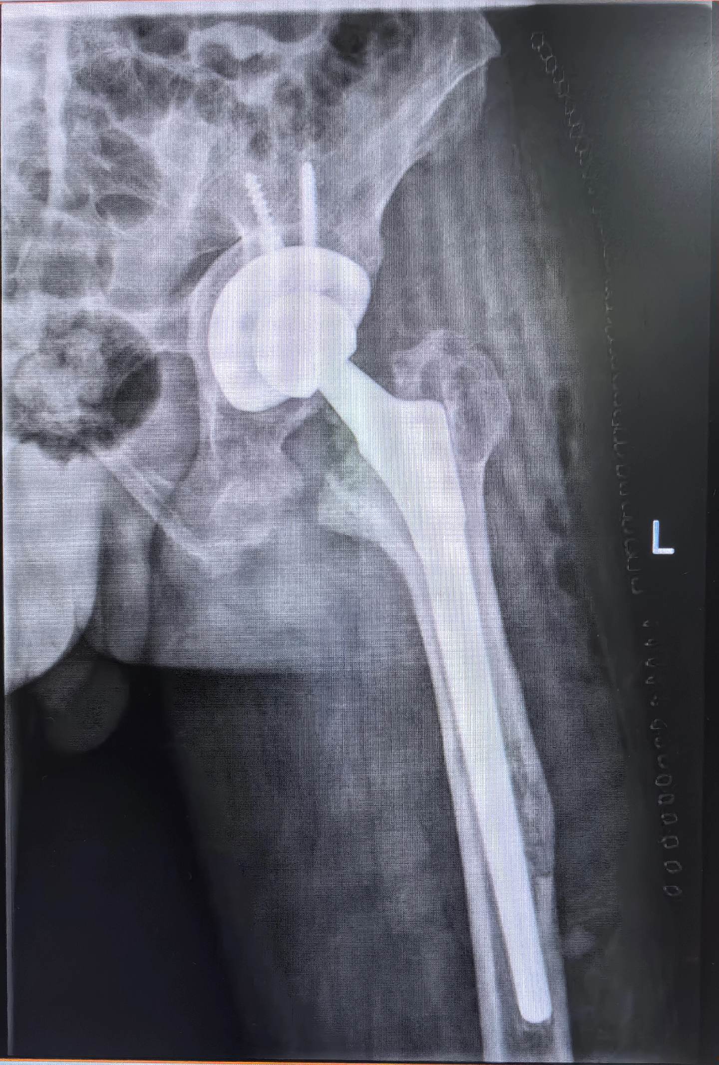 髋关节翻修。强脊炎THA后假体松动,术前短3cm,术后等长。难点:松动的股骨柄远端硬化如何突破?实际操作起来真的不容易。此例虽有插曲,好在医院大平台器械完备,结局满意,术后2天正常下床走路🌹