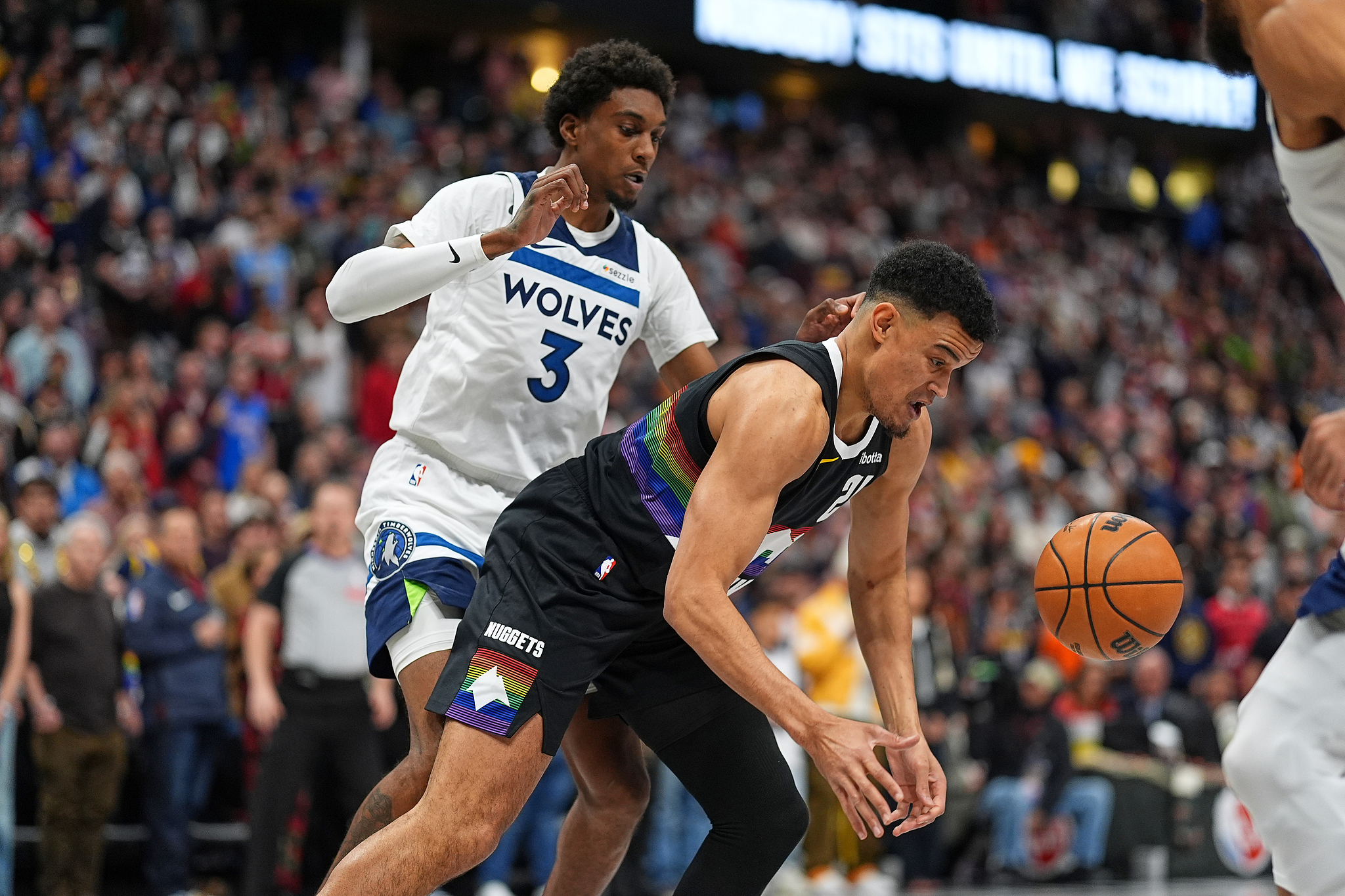 末节,里德2+1,布朗禁区补篮得分,麦丹快攻得分,琼斯追身上篮,麦丹连得4分,穆雷助攻小哈达威命中三分,瓦兰丘纳斯空切上篮,戈贝尔吃饼暴扣;比赛继续,穆雷命中三分,麦丹跳投得分,约基奇勾手命中,爱德华兹后仰中投,兰德尔两罚全中以及抢断反击上篮,麦丹快攻得分,兰德尔强硬2+1,森林狼,11-0追到4分,约基奇中投打破得分荒,爱德华兹轰进三分以及突破上篮,约基奇助攻穆雷回应三分,麦丹错失关键上篮,琼斯关键得分,华子三分造犯规并且三罚全中,比赛还剩4.8秒麦丹暴扣追到1分,约基奇关键两罚全中,1.1秒华子轰进绝平三分,掘金没有暂停,约基奇超远绝杀三分打板不中,双方进入加时。