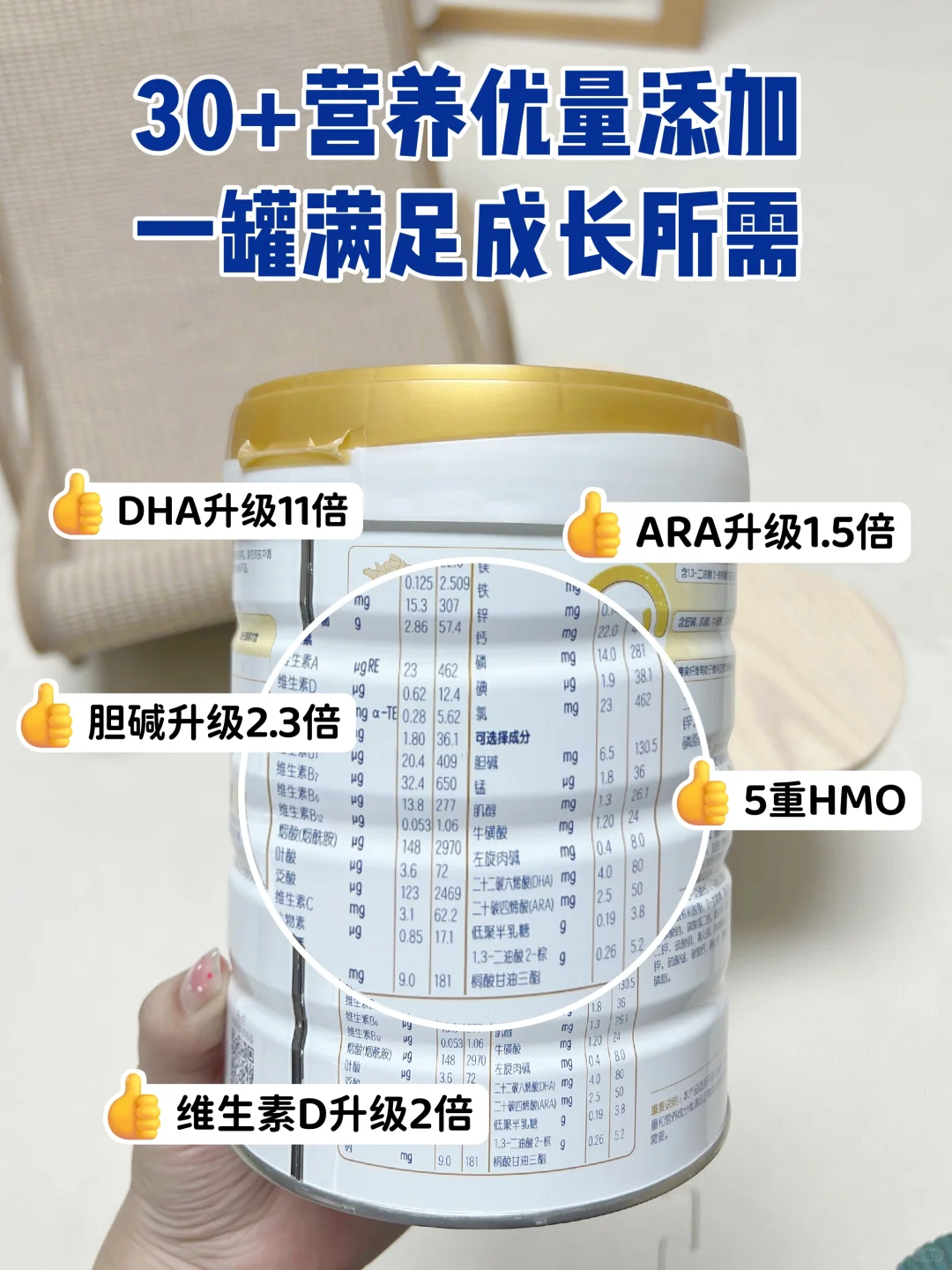 其他营养它也都兼顾到了,添加了30多种的营养,5种HMO,钙,维生素D等,[okR]全方位守护宝宝成长。