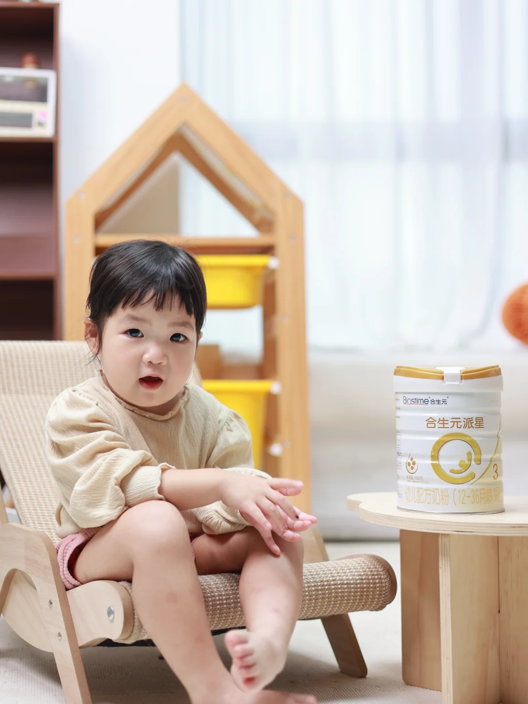 后来咨询了育婴师朋友,才知道应该是奶粉不合适。对于这种脆皮肚宝宝,转奶要选好吸收的[买爆R],不然很容易不长肉。做了不少功课之后,最后给我家宝宝选择了[向右R]合生元派星奶粉。