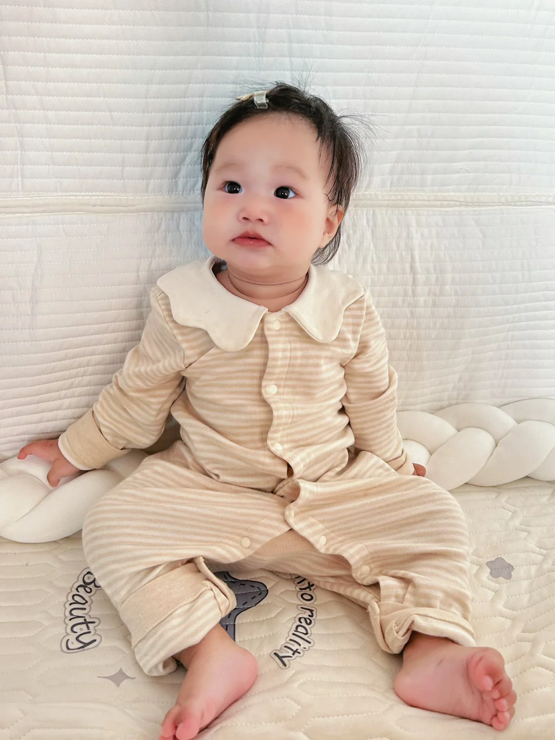 家人们,今天必须给大家安利这款超赞的宝宝连体衣呀! 它的面料柔软亲肤,就像云朵般轻柔地贴在宝宝娇嫩的肌肤上,完全不会有刺痒感哦。 📍有机棉严格遵循有机种植,从种子到土壤、施肥都是全天然无污染的♻ 对比普通棉花,有机棉种植可: ✅减少91%水资源消耗 ✅减少62%能源使用 ✅减少70%土壤酸化 不伤皮肤,有呵护保养作用 细节之处更是用心,领口袖口舒适贴合,换尿布也方便,是宝宝必备的贴心衣物呢,宝妈宝爸们别错过啦!
