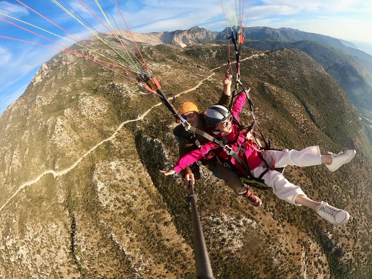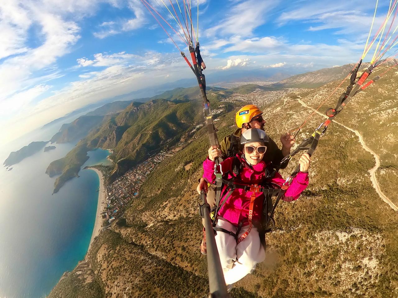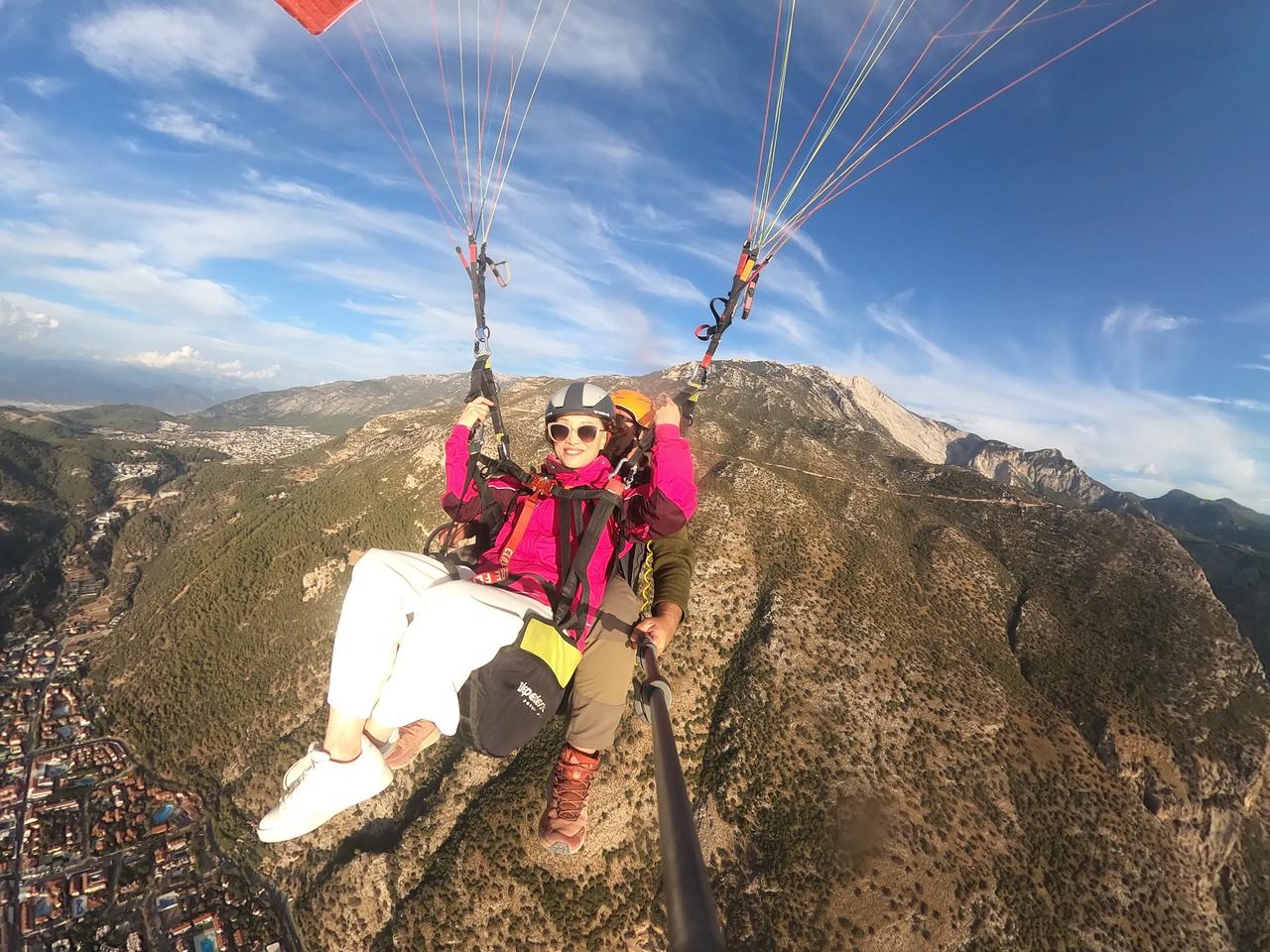 滑翔伞极限运动带给我极大快乐🎉🎉[庆祝][耶][彩虹][给力][加油]今天过的好惊险刺激[大笑][强][庆祝] 看天气预报,明天以后几天将是多云和大雨天气,先生为了实现我的愿望,改变我们的原计划行程,希望在变天之前赶到土耳其飞滑翔伞最好的地方。 我们一路向前,其中有一半路是崎岖陡峭又有很多回头弯的山路,开车近六个小时,我们终于赶上了最后一波可以起飞的滑翔伞🪂。 我好激动啊,我终于实现了在空中飞翔的愿望[耶] 感谢先生帮助我实现愿望,我曾经多次梦见自己在空中自由飞翔,这次终于不是梦了[加油]在高空飞翔的时候,听着呼呼的风声,看着眼下的世界,我用鸟的视角俯瞰大海和城镇,说没有一点紧张也是假的,但兴奋不已的心情早已把恐惧驱散,从坐着送我一人去山顶的车(一路我想着这一切的不可思议也有微许紧张),到所谓小跑几步乘着滑翔伞在空中腾飞,等我安全返回落地,我和先生都有一种生离死别后又重逢的感觉,其实我在空中时,运营商让我和先生通了几句话,他不断喊着我的名字,他也很忐忑,我告诉他我很好[大笑]由于时间关系,先生这次不得已放弃了飞翔体验。我安全落地后遇到两位国内来旅行的女士,她们好羡慕我,也想去飞,但是此时所有滑翔伞的运营商铺都关闭了,她们只好遗憾离去……今天对我来说是个永远都难忘的日子[庆祝][庆祝][庆祝][心][心][心]玩不腻的滑翔伞 滑翔伞🪂 滑翔伞飞行圣地