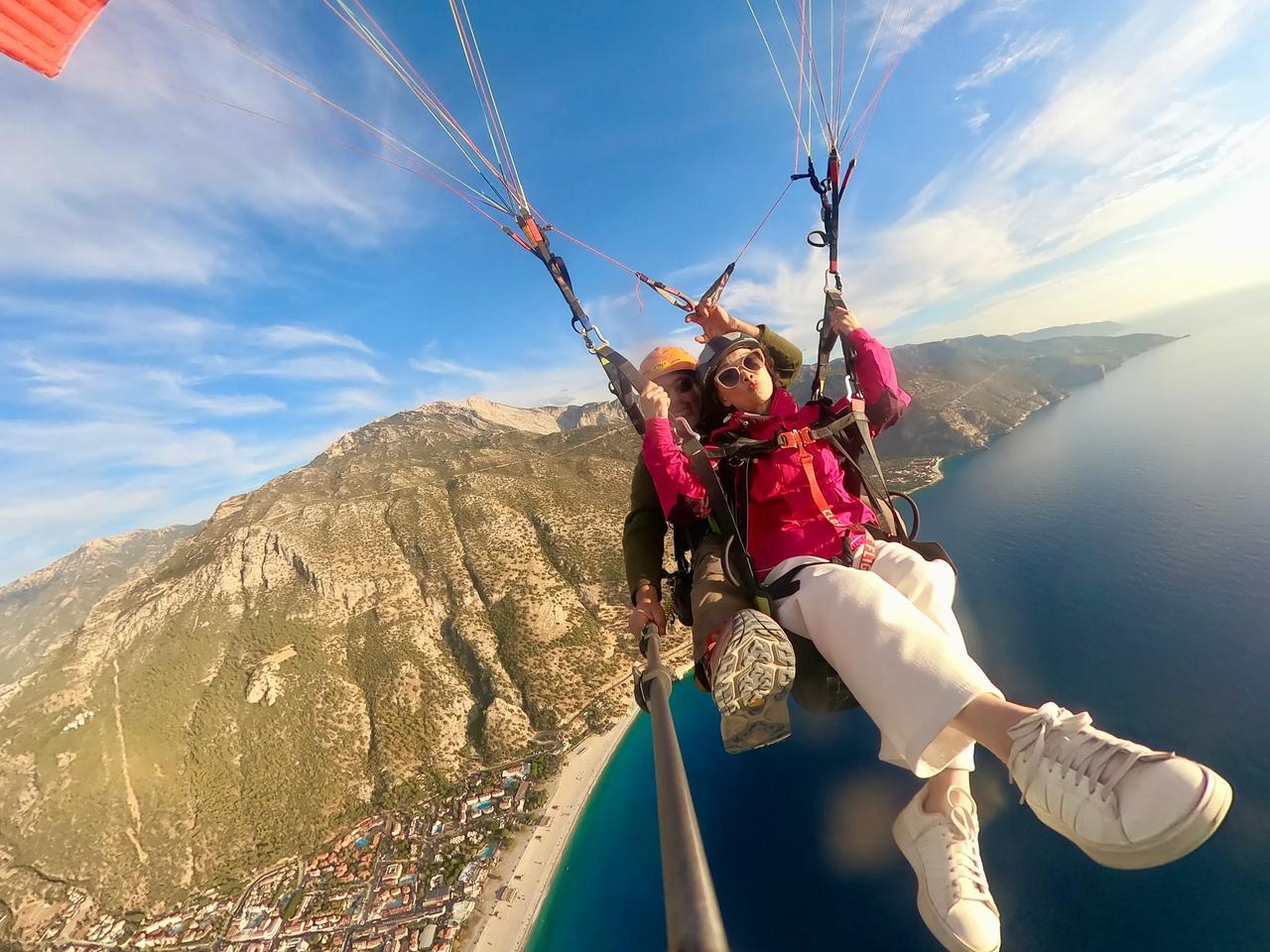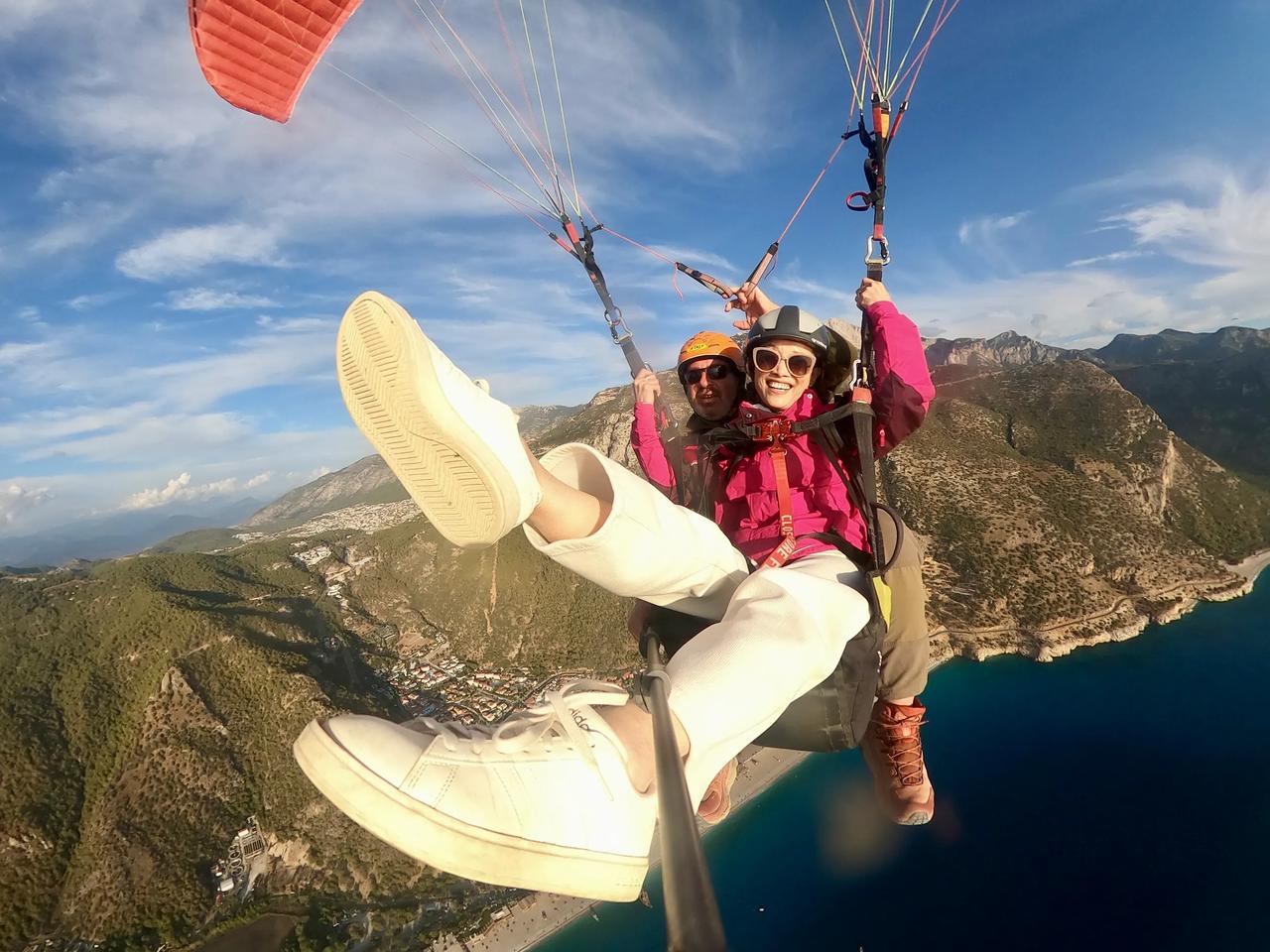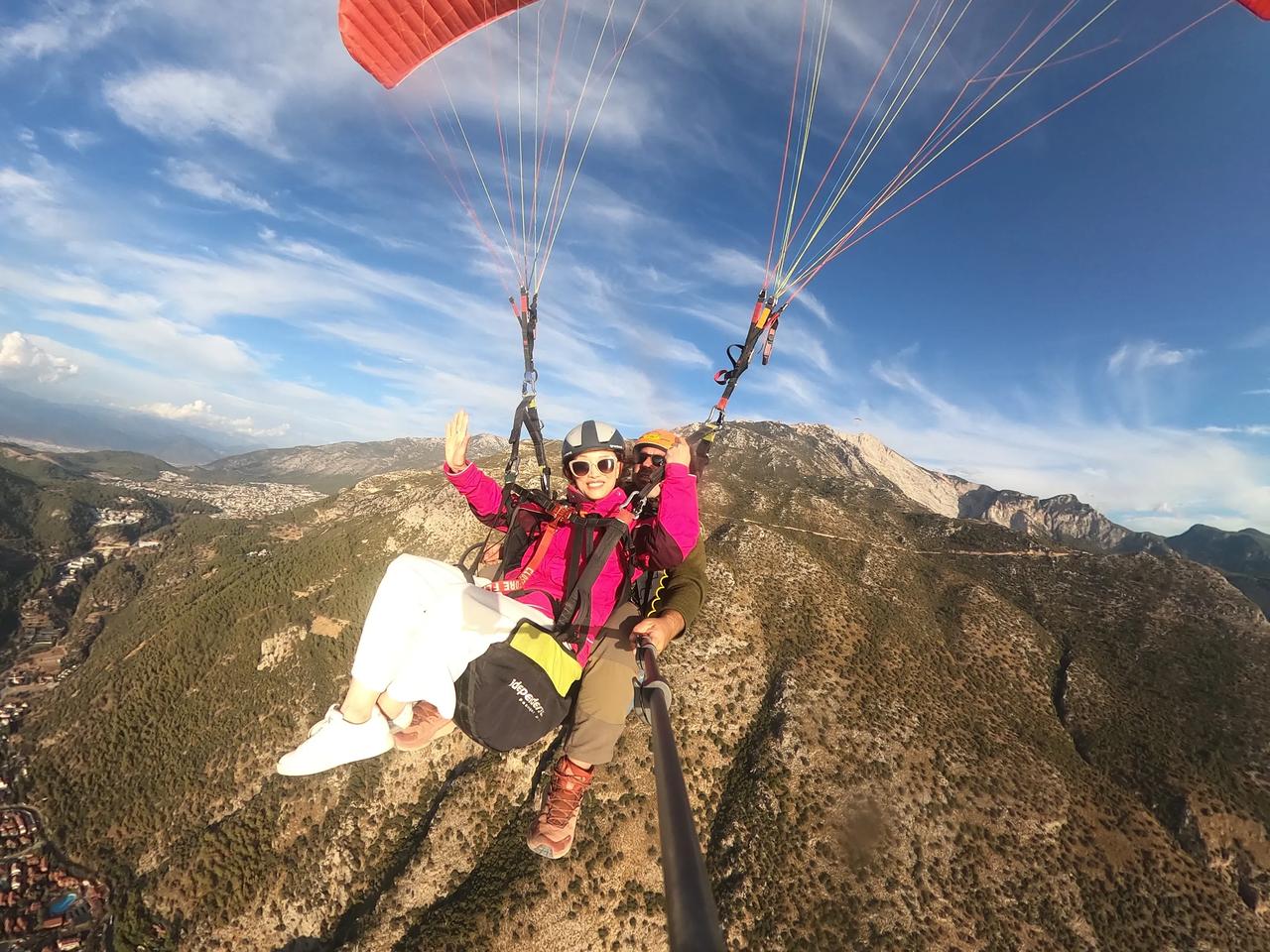 滑翔伞极限运动带给我极大快乐🎉🎉[庆祝][耶][彩虹][给力][加油]今天过的好惊险刺激[大笑][强][庆祝] 看天气预报,明天以后几天将是多云和大雨天气,先生为了实现我的愿望,改变我们的原计划行程,希望在变天之前赶到土耳其飞滑翔伞最好的地方。 我们一路向前,其中有一半路是崎岖陡峭又有很多回头弯的山路,开车近六个小时,我们终于赶上了最后一波可以起飞的滑翔伞🪂。 我好激动啊,我终于实现了在空中飞翔的愿望[耶] 感谢先生帮助我实现愿望,我曾经多次梦见自己在空中自由飞翔,这次终于不是梦了[加油]在高空飞翔的时候,听着呼呼的风声,看着眼下的世界,我用鸟的视角俯瞰大海和城镇,说没有一点紧张也是假的,但兴奋不已的心情早已把恐惧驱散,从坐着送我一人去山顶的车(一路我想着这一切的不可思议也有微许紧张),到所谓小跑几步乘着滑翔伞在空中腾飞,等我安全返回落地,我和先生都有一种生离死别后又重逢的感觉,其实我在空中时,运营商让我和先生通了几句话,他不断喊着我的名字,他也很忐忑,我告诉他我很好[大笑]由于时间关系,先生这次不得已放弃了飞翔体验。我安全落地后遇到两位国内来旅行的女士,她们好羡慕我,也想去飞,但是此时所有滑翔伞的运营商铺都关闭了,她们只好遗憾离去……今天对我来说是个永远都难忘的日子[庆祝][庆祝][庆祝][心][心][心]玩不腻的滑翔伞 滑翔伞🪂 滑翔伞飞行圣地