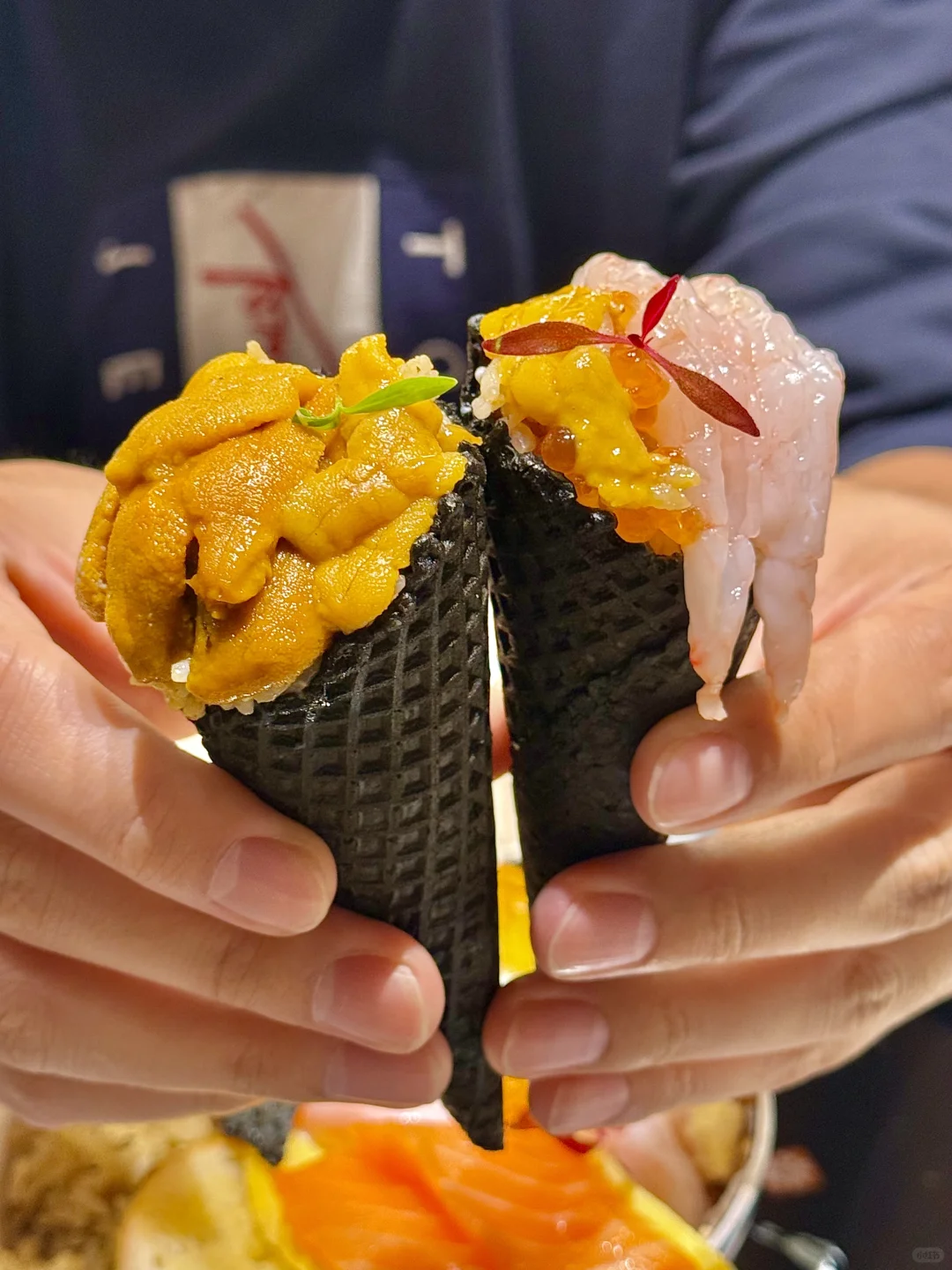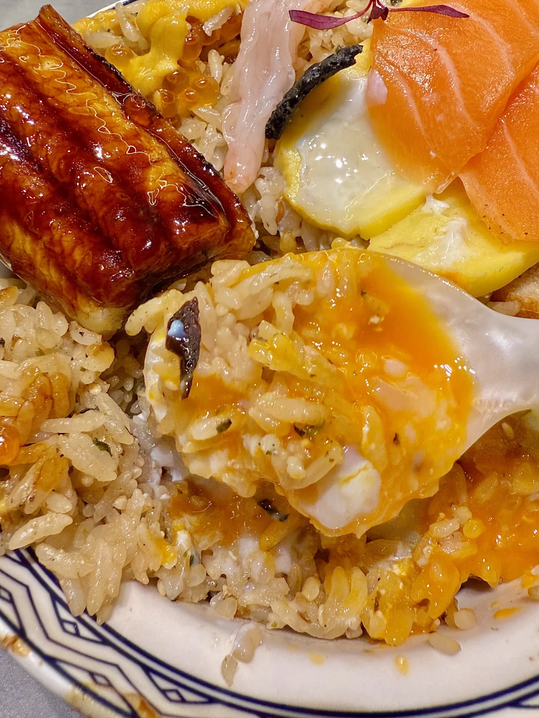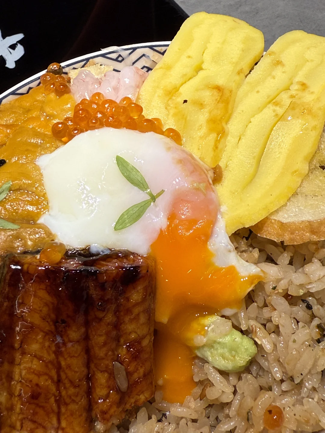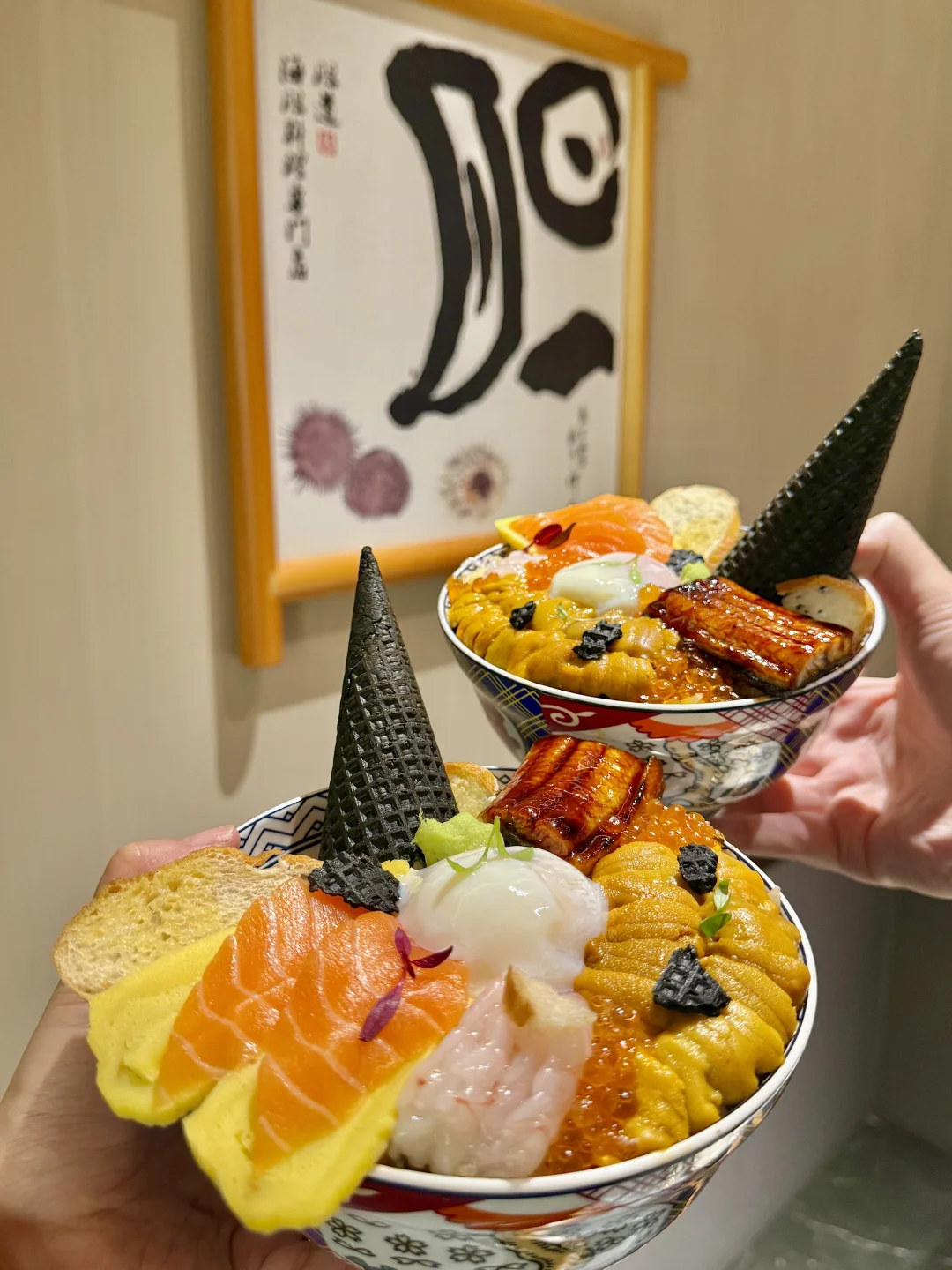 ZUI近姐妹带我来吃了一份无敌丰盛的海胆饭! 足足用了四只海胆,而且还加了三文鱼、甜虾、烤鳗鱼、鱼子酱…真是奢华版的享受啊! 海胆都是现开的,色泽鲜艳,入口真是鲜美鲜甜JI了!尝了海胆和刺身,再用温泉蛋伴着米饭一起,味道好浓郁! 也可以自己组合DIY的吃法,这一碗199r的海胆饭套餐,真是让我吃出了超越价格的体验的味道!值了!