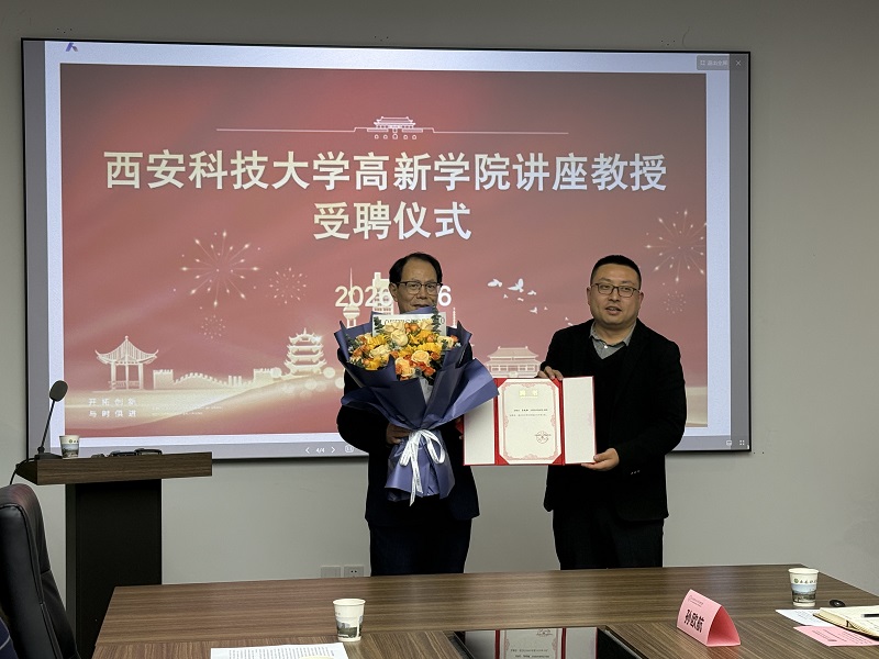 为深化学科建设、拓宽师生学术视野,搭建高水平学术交流平台,助力人才培养质量提升,2026年3月6日,西安科技大学高新学院在日新楼101会议室隆重举行讲座教授受聘仪式,正式聘任马先标高级研究员为学院讲座教授。仪式由经济管理与传媒艺术学院常务副院长吴航行主持,学校及分院相关领导、经济管理系教研室主任、骨干教师代表及部分学生代表出席了本次仪式。